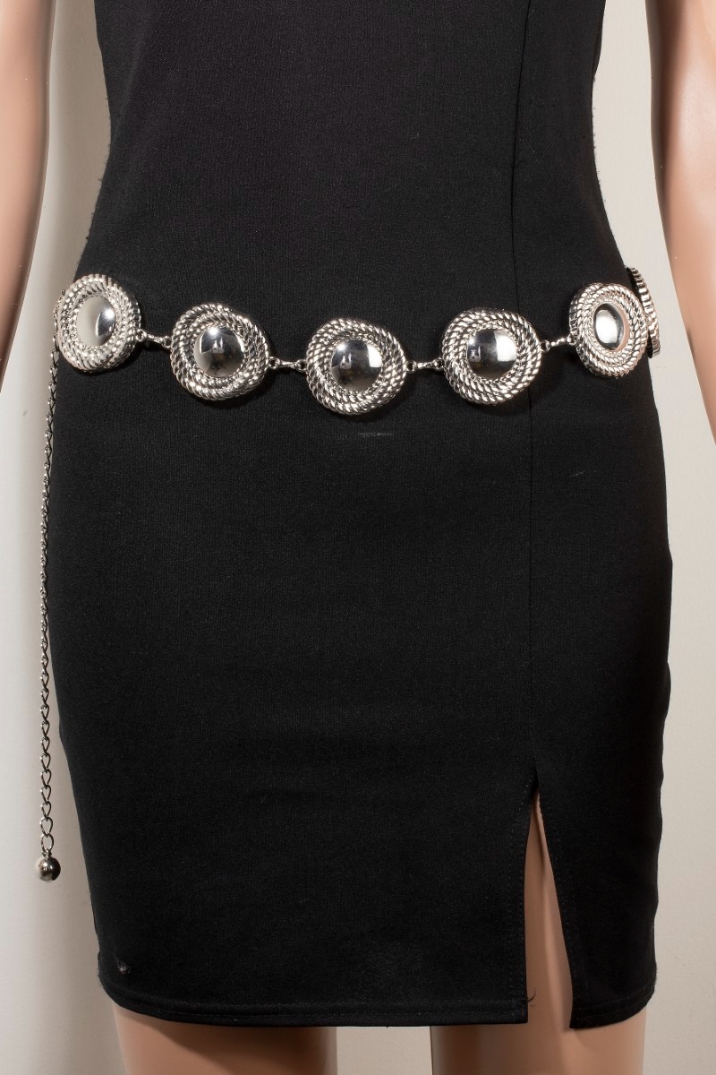 • This chain belt brings a luxurious metallic rope wrap disc style. Indulge in the allure of exquisite craftsmanship as this chain belt effortlessly adds a touch of luxury to your attire.