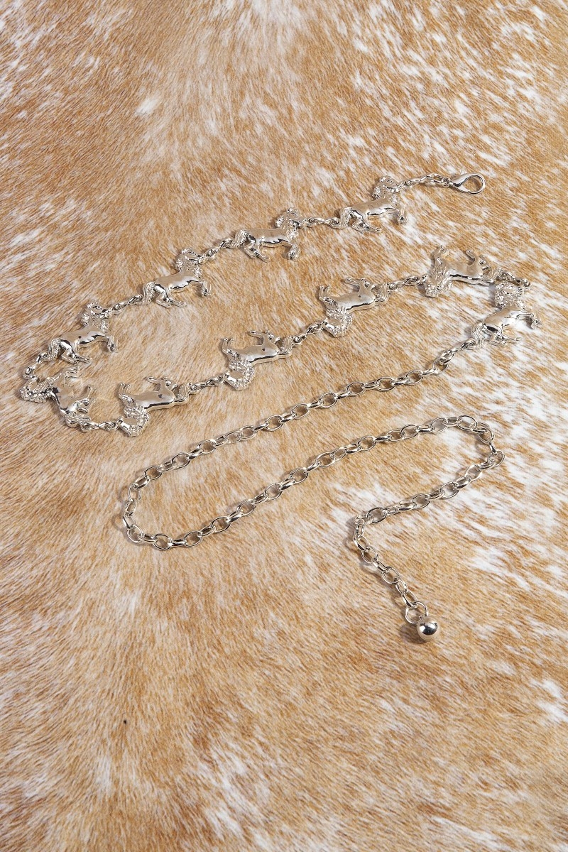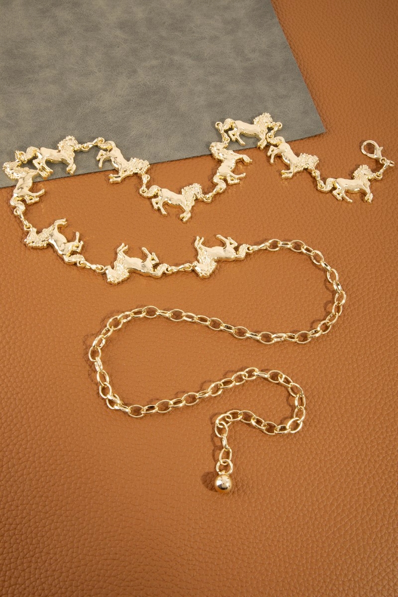 - This chain belt introduces a unique multi horse style. Witness the transformative power of accessories as this piece effortlessly redefines your fashion narrative.