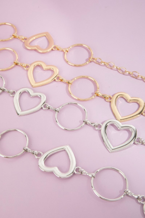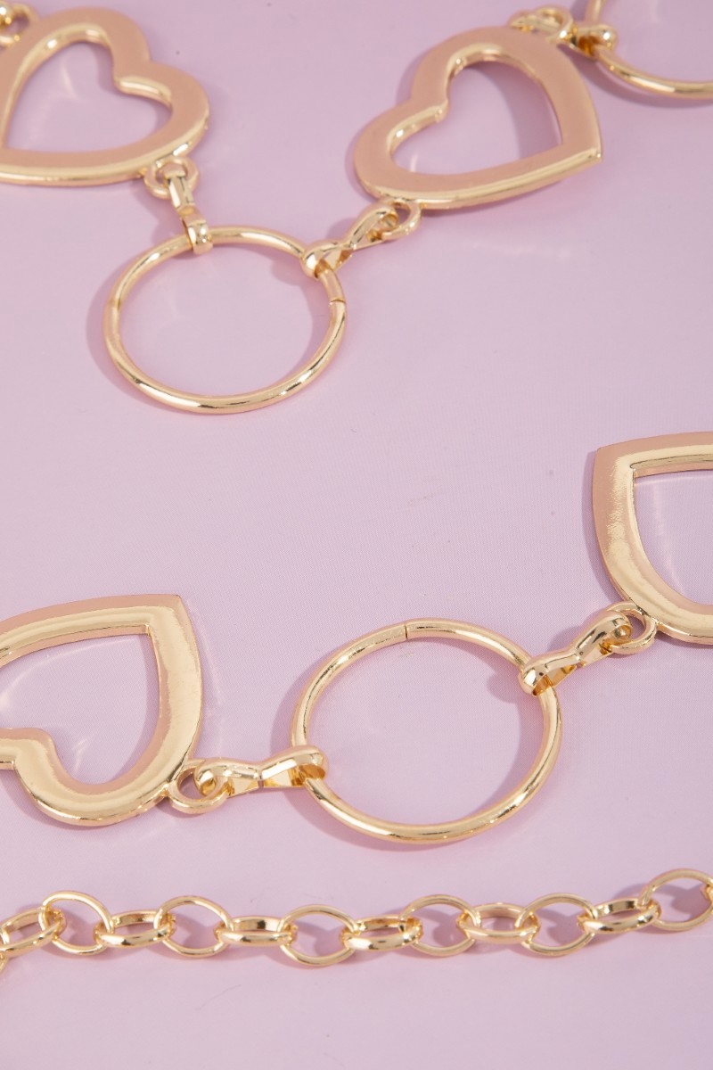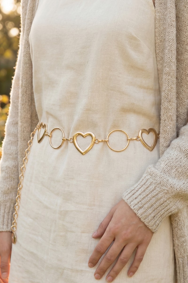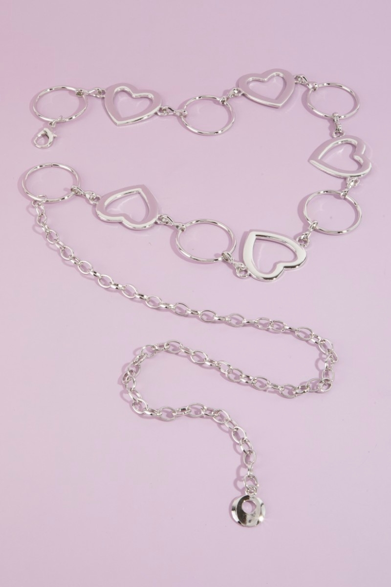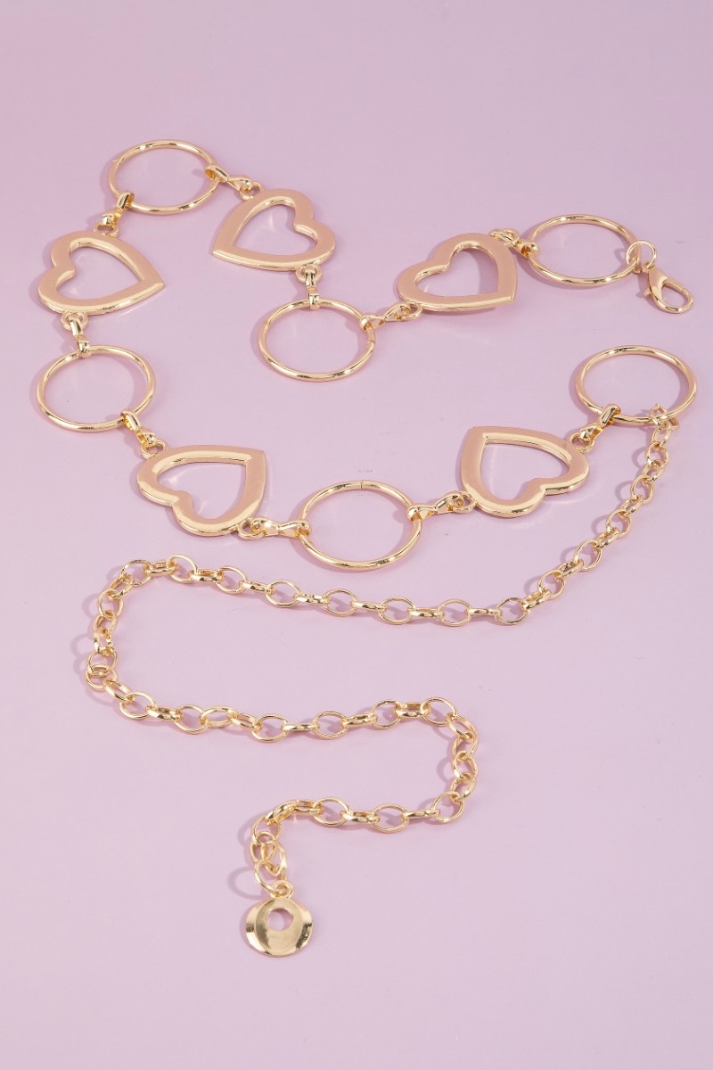 • This chain belt showcases a timeless open heart & circle mixed link style. Embark on a journey of sartorial refinement as this chain belt effortlessly complements your fashion sense.