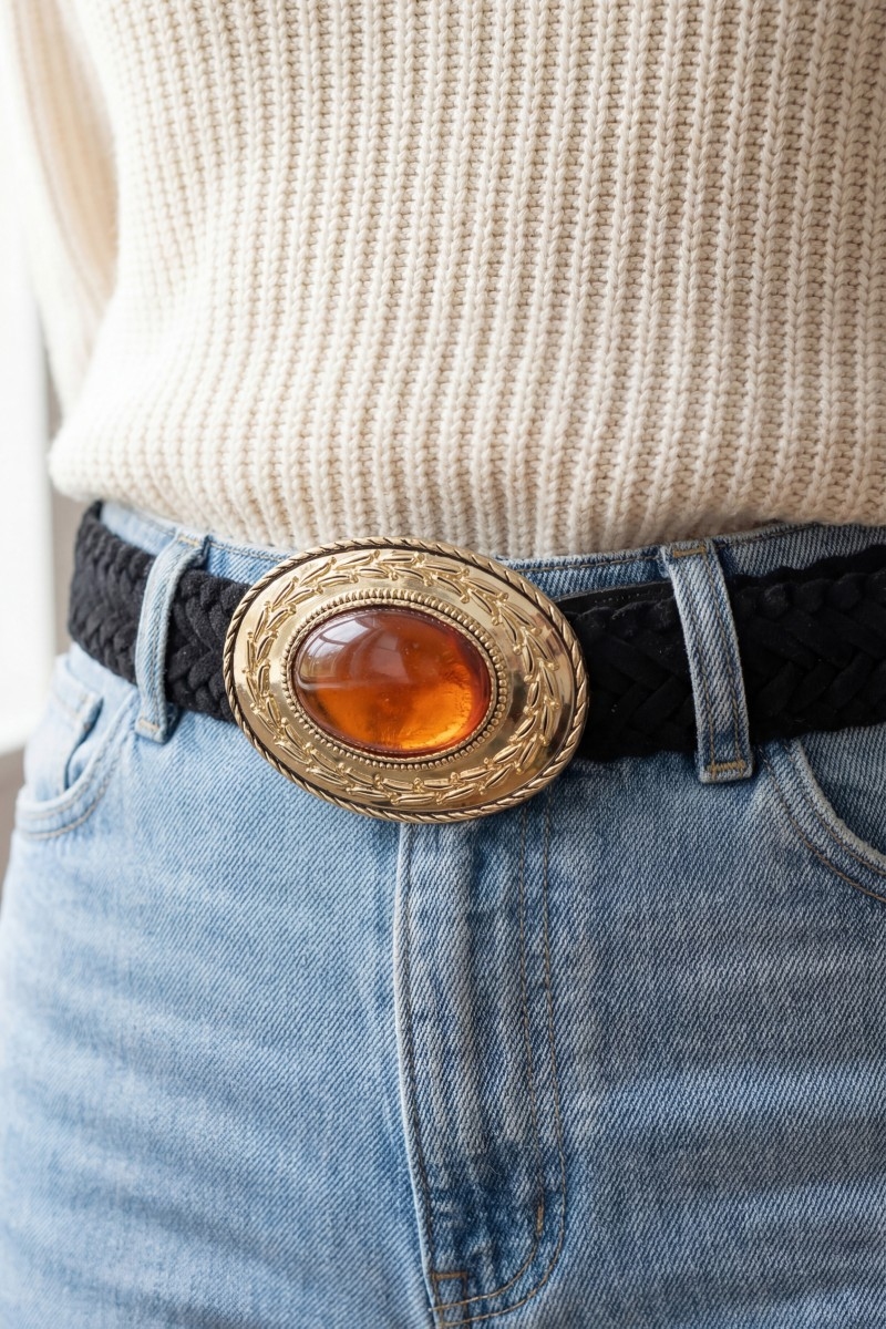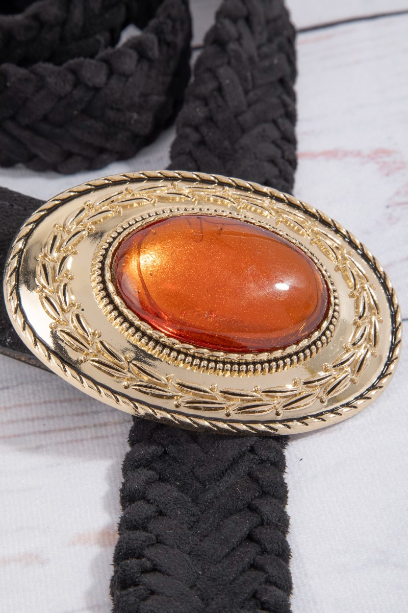 - This braided belt adds a modern oval shaped buckle vegan leather style. Experience refined sophistication with this understated yet stylish piece.