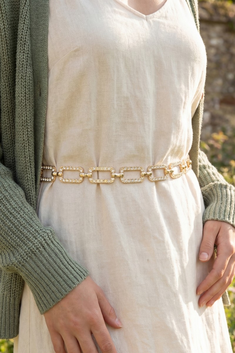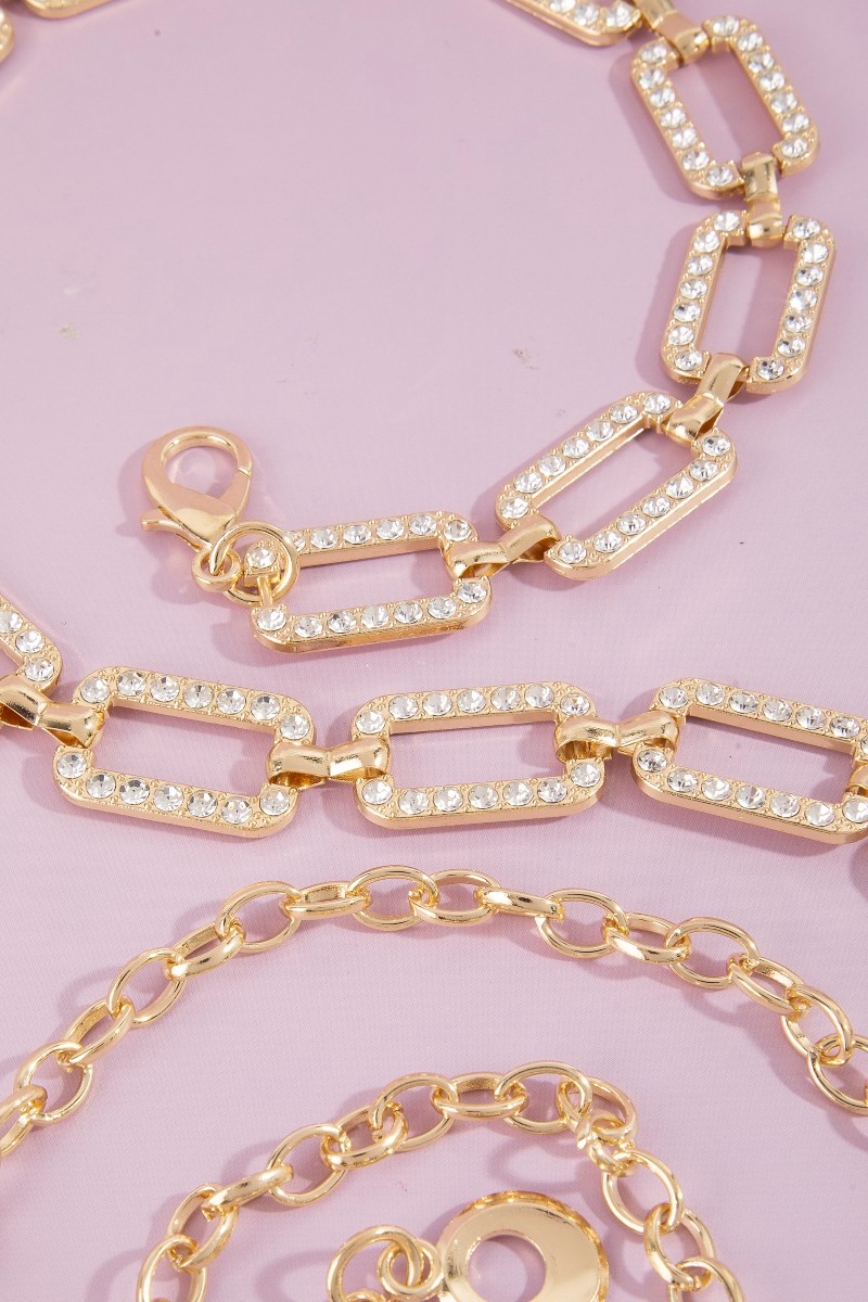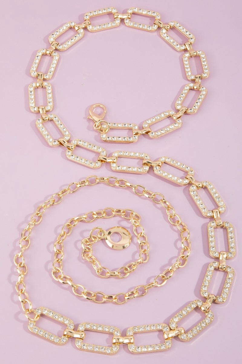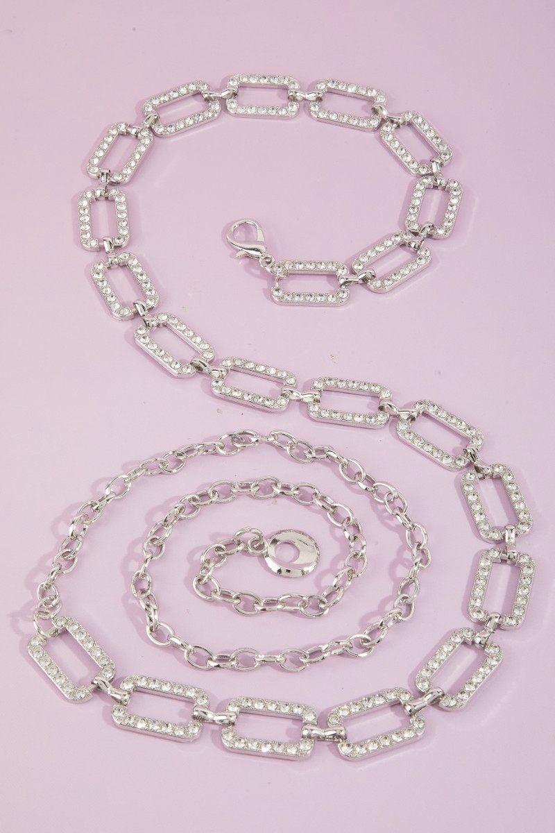 - This chain belt showcases a timeless pave crystal rectangle link style. Explore a blend of classic charm and contemporary flair.