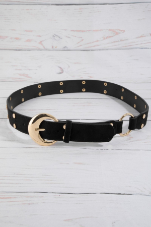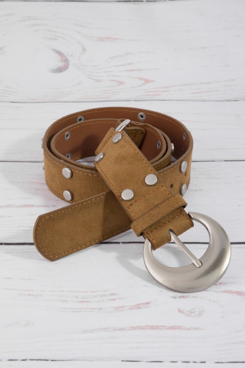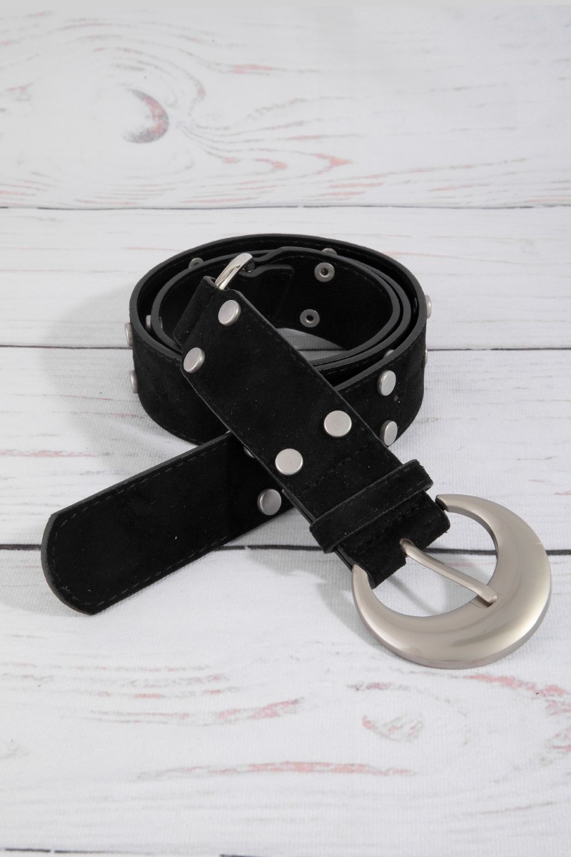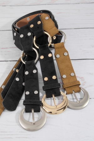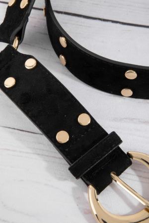 - This leather belt brings a stunning studded trim vegan style. Immerse yourself in the details of design, as this leather belt effortlessly becomes a conversation starter.