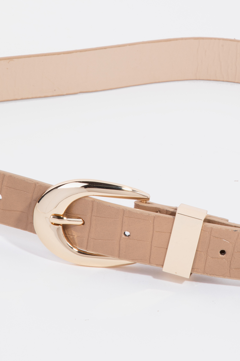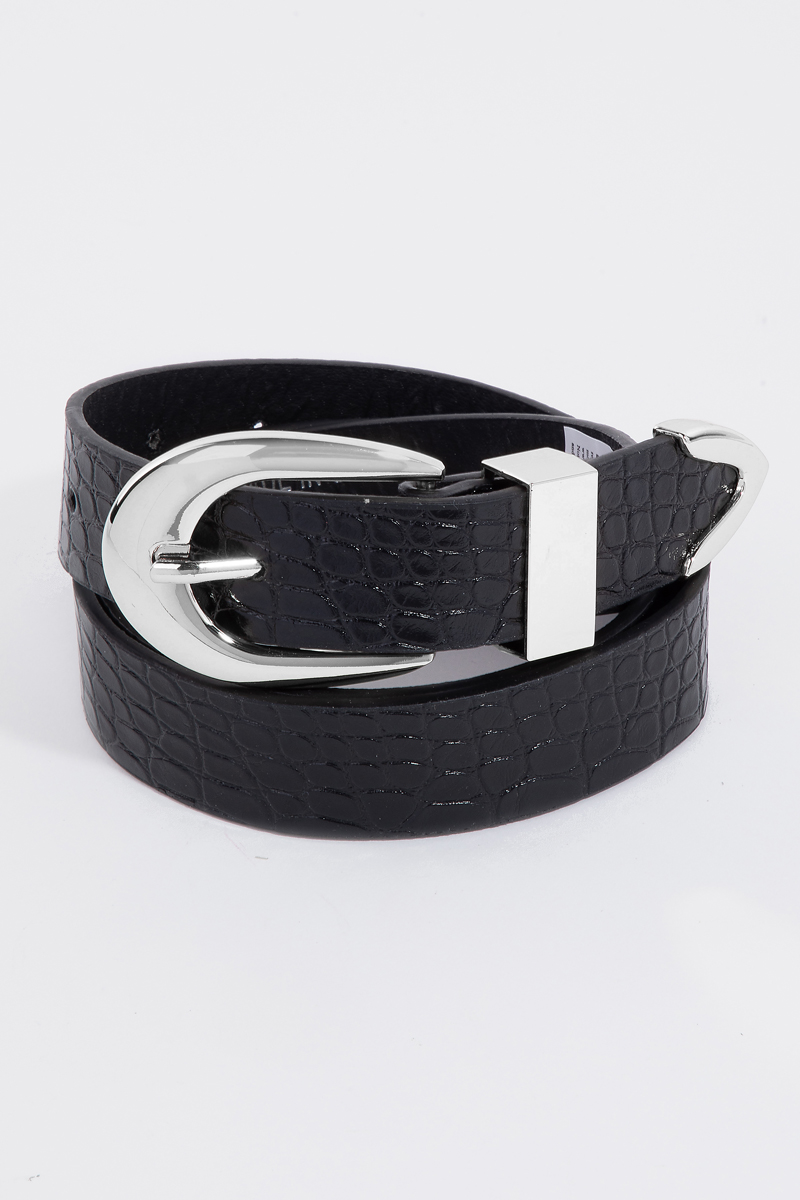 - This leather belt displays a vibrant alligator skin detail vegan style. Unveil modern elegance with this subtly intricate leather belt.