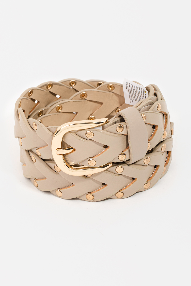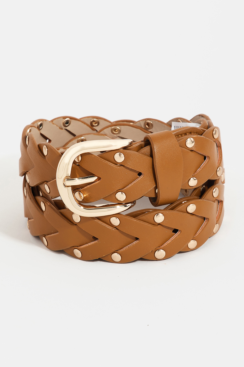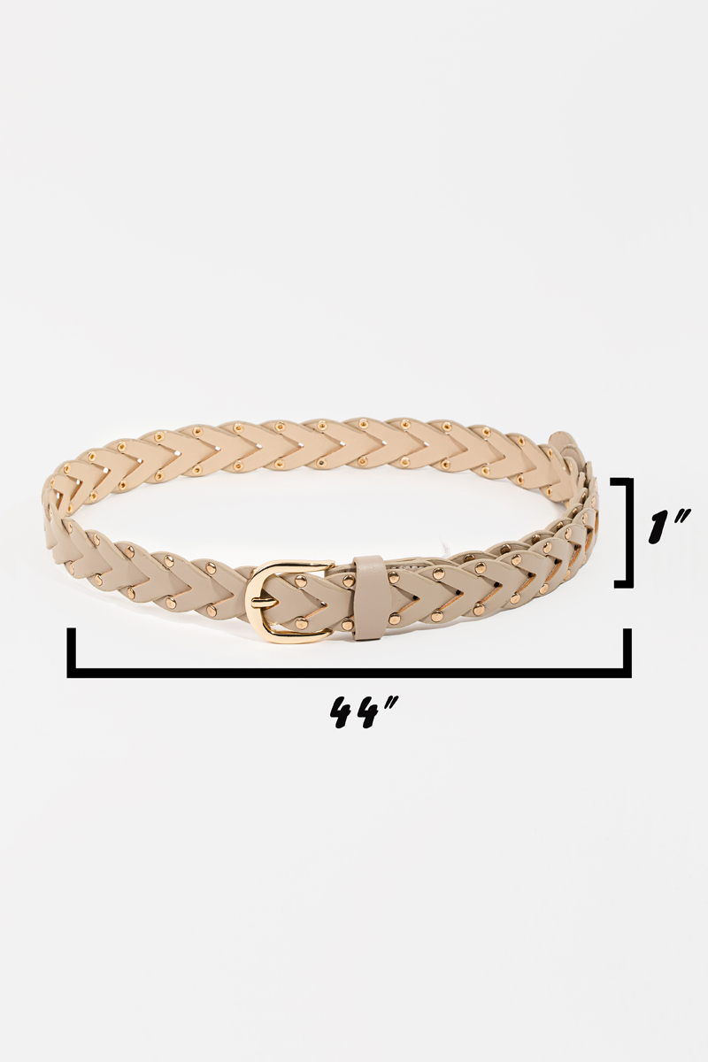 - This belt showcases a unique faux leather braided design fashion style. Savor the allure of detailed craftsmanship in this exquisite belt.
