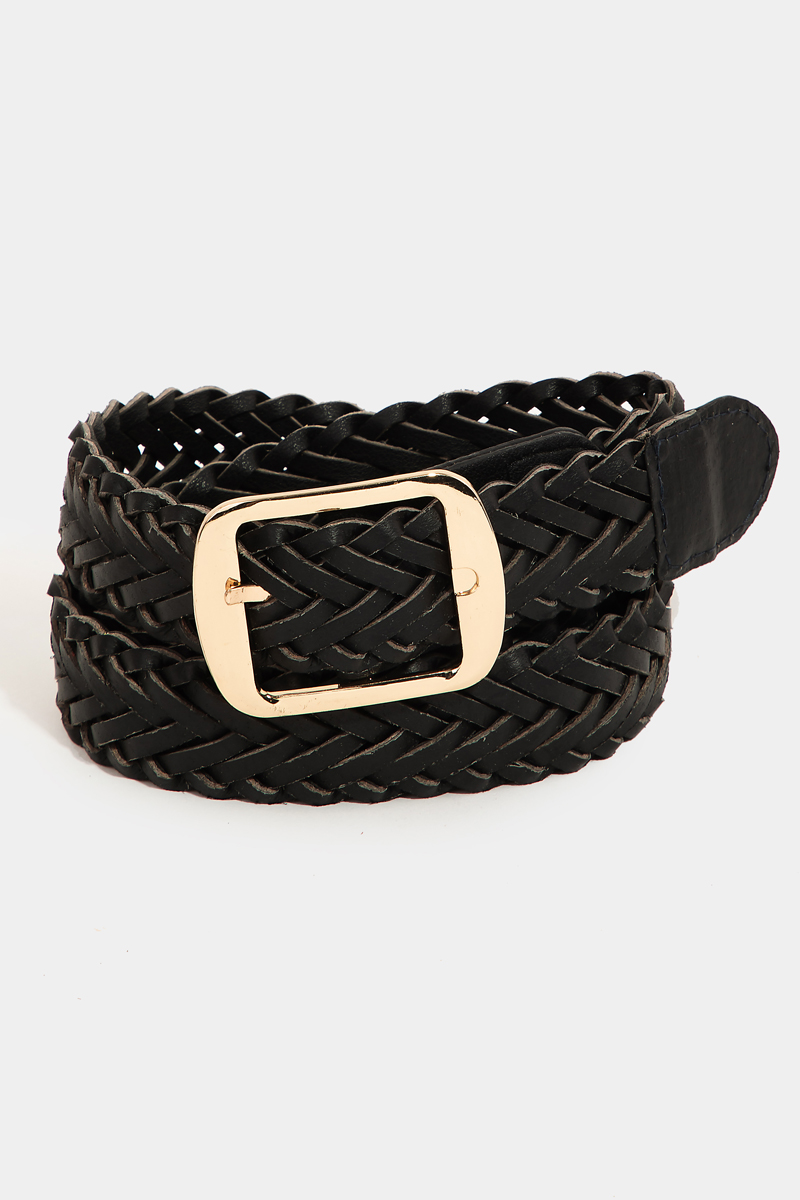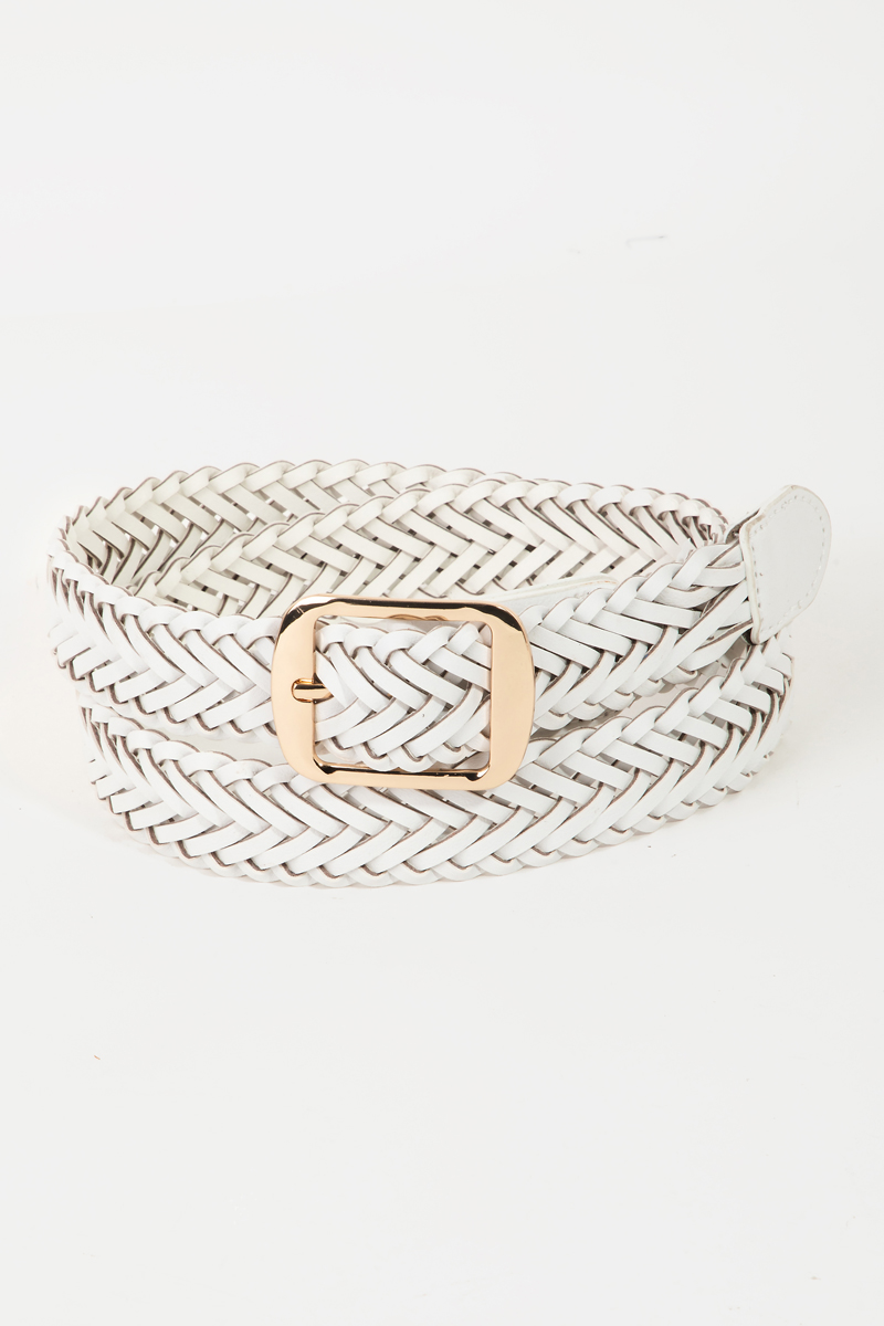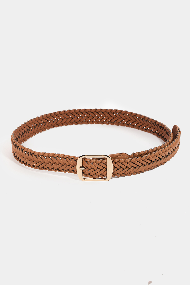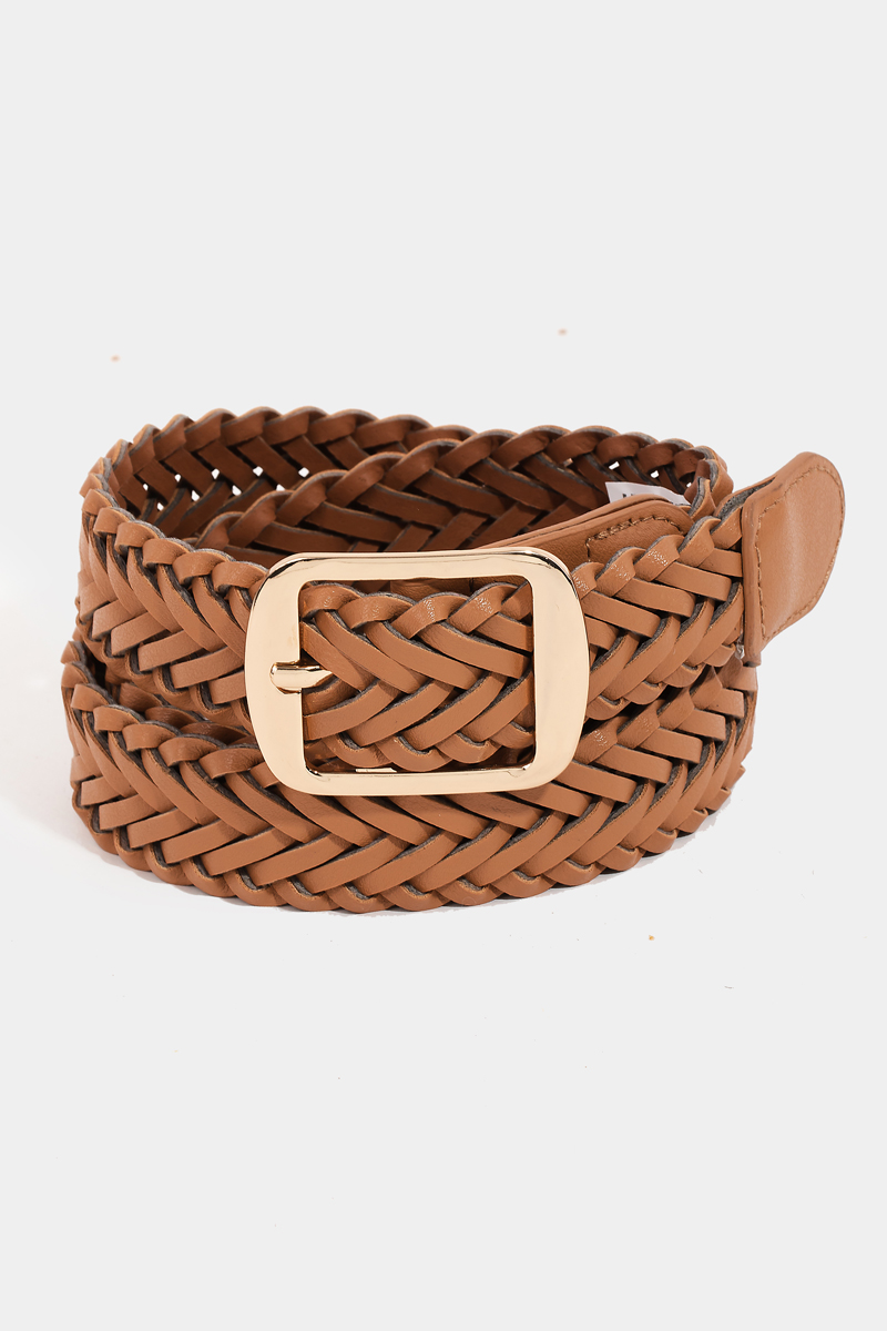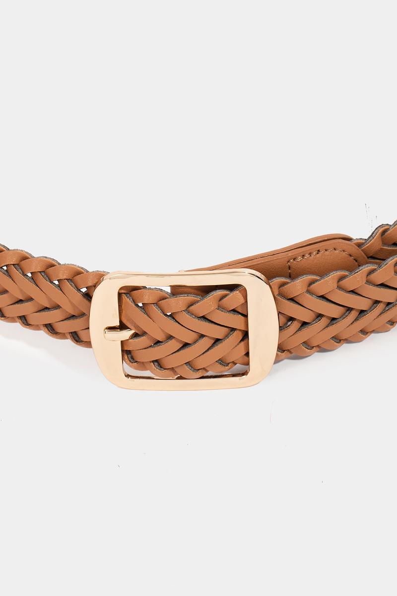 Oval Shaped Buckle Vegan Leather Braided Belt