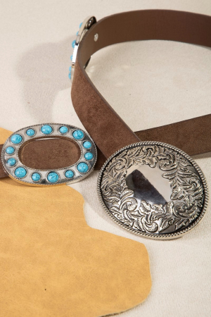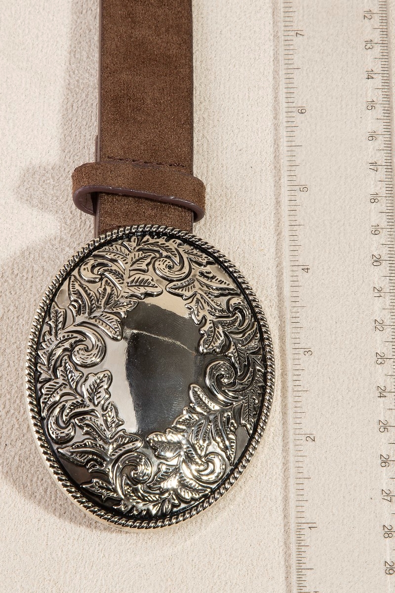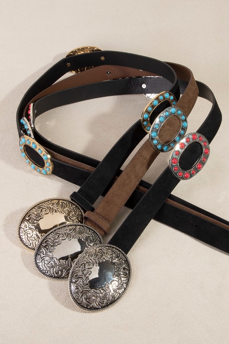 • This leather belt showcases a unique concho buckle detail western style. Elevate your ensemble with this chic, timeless leather belt.