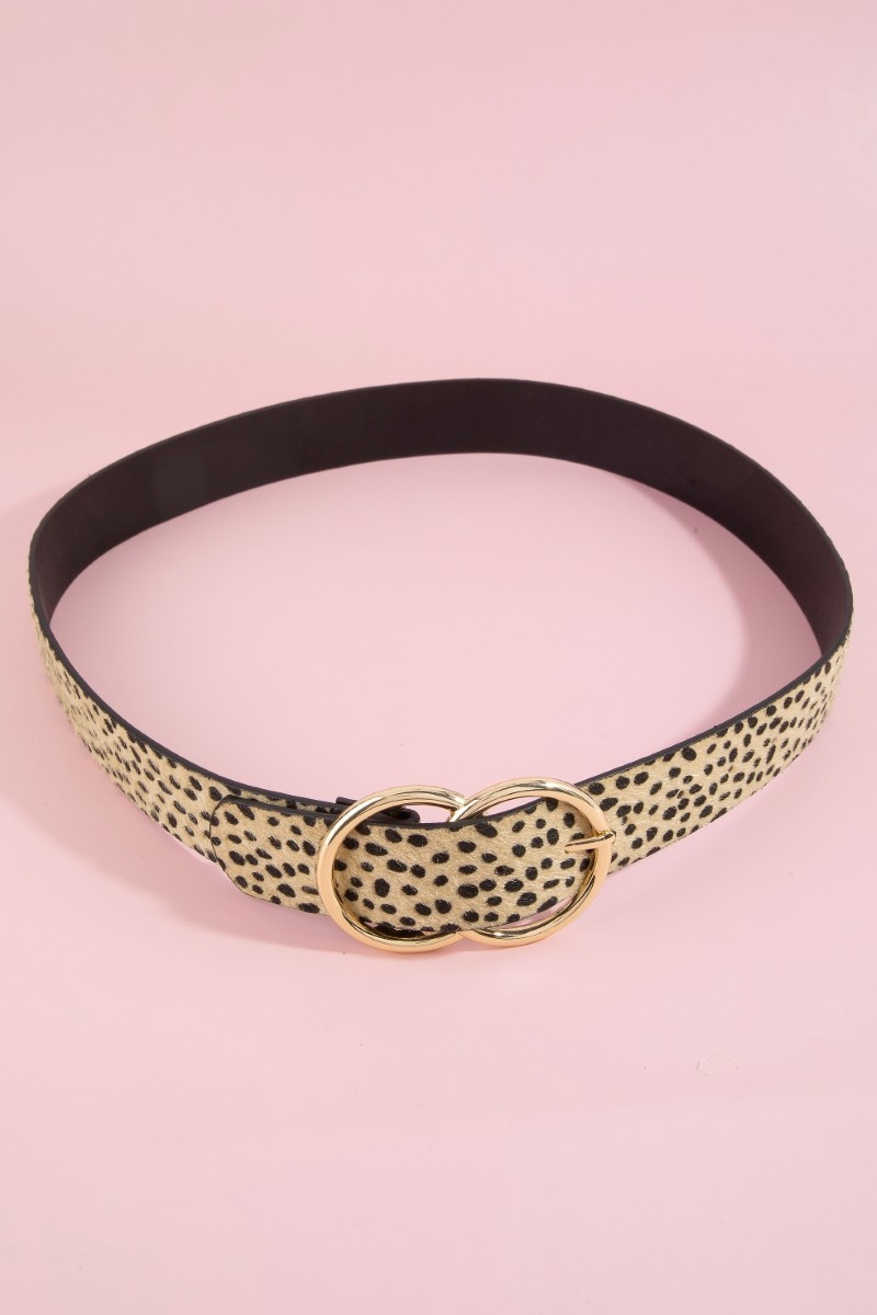 - This leather belt features a fashionable double hoop buckle vegan style. Step into a world of refined taste as this leather belt effortlessly refines the details of your outfit.