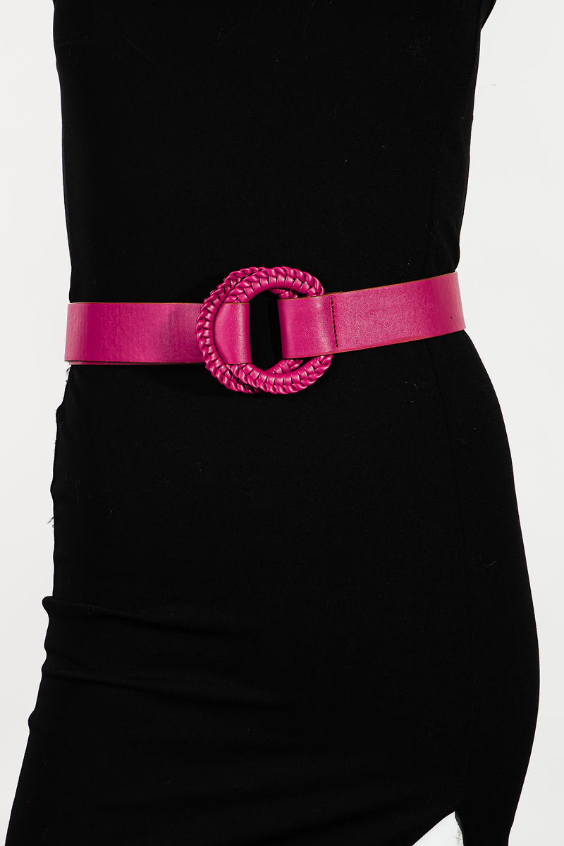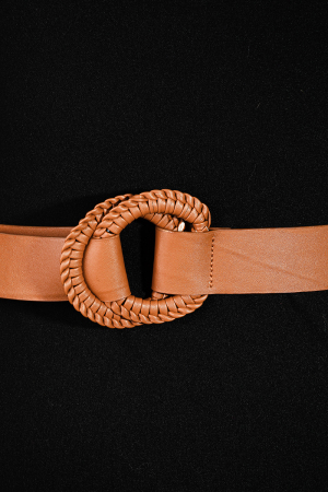 Round Buckle Vegan Leather Braided Belt