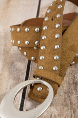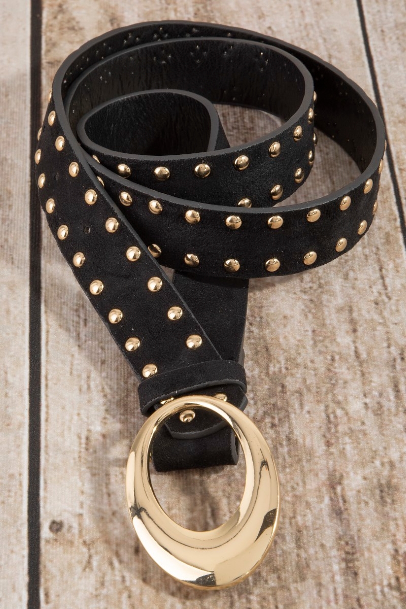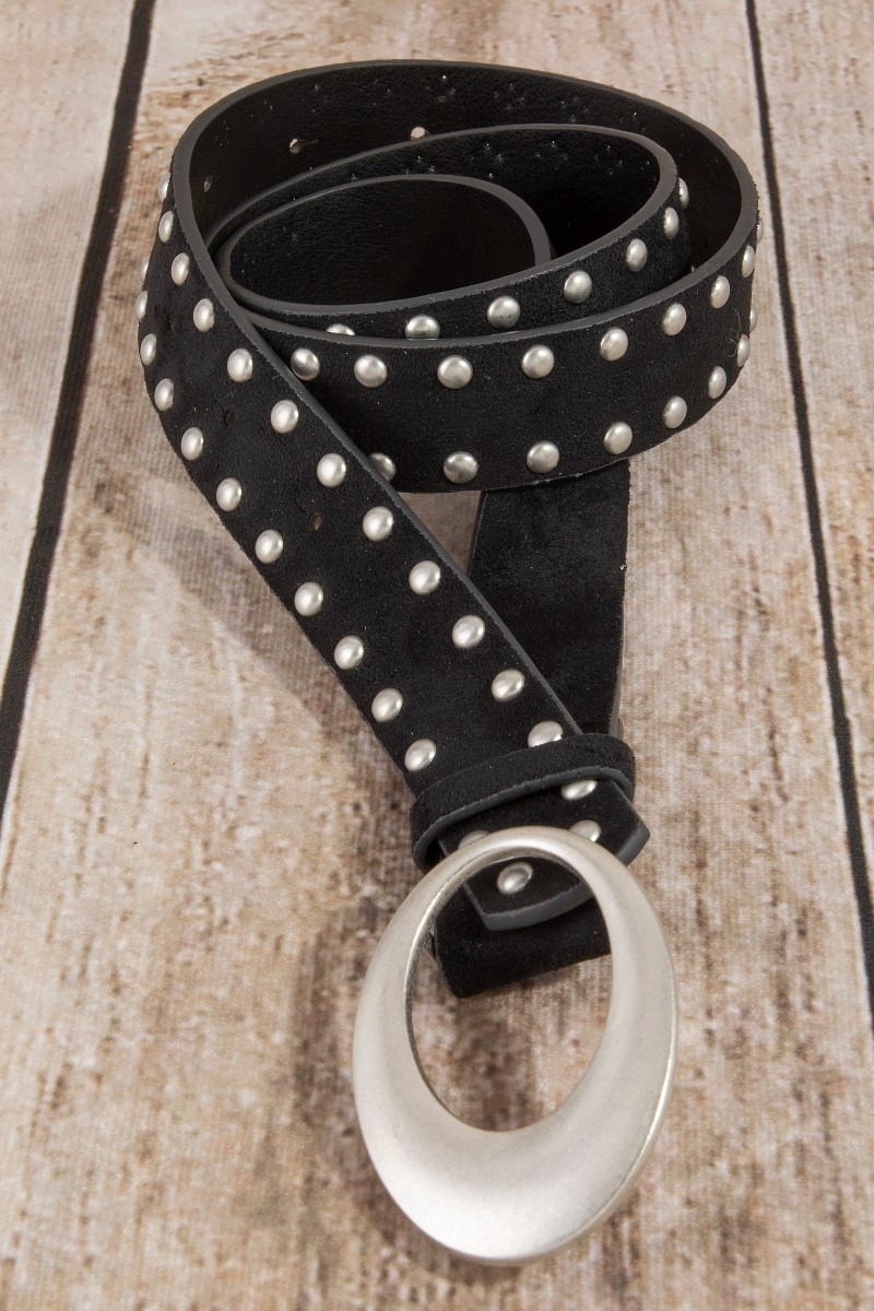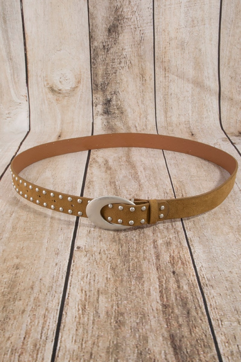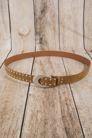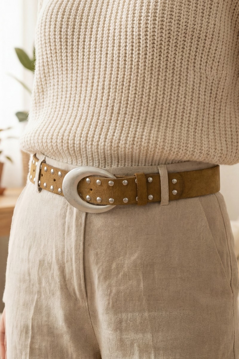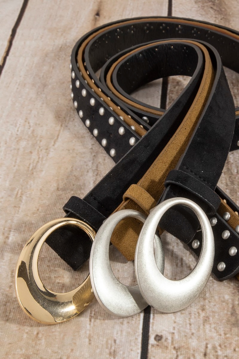- This leather belt adds a modern double studded trim vegan style. Experience the joy of accessorizing with this piece that effortlessly combines versatility and charm.