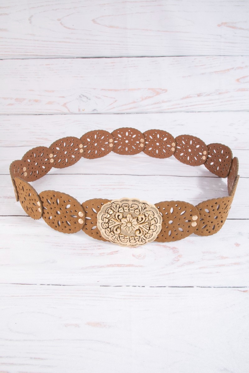 Western Grommet Oval Longhorn Buckle Vegan Leather Belt