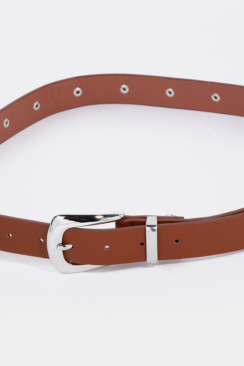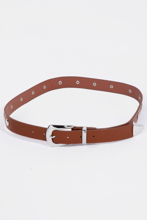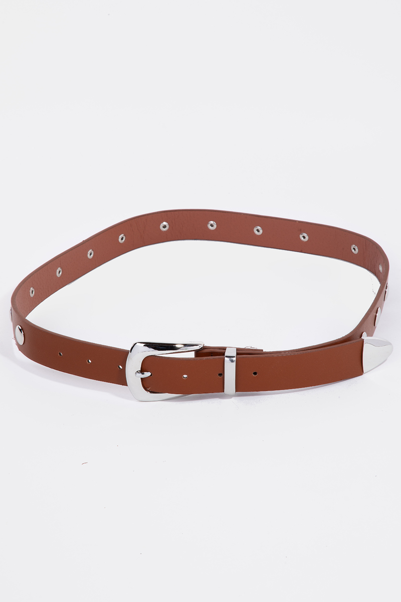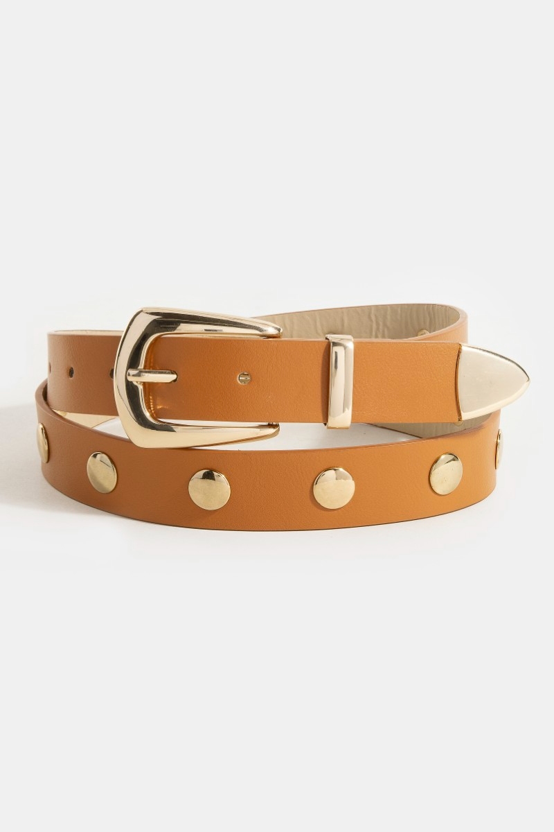 - This faux leather belt adds a modern flat metallic riveted style. Elevate your ensemble with this chic, timeless faux leather belt.