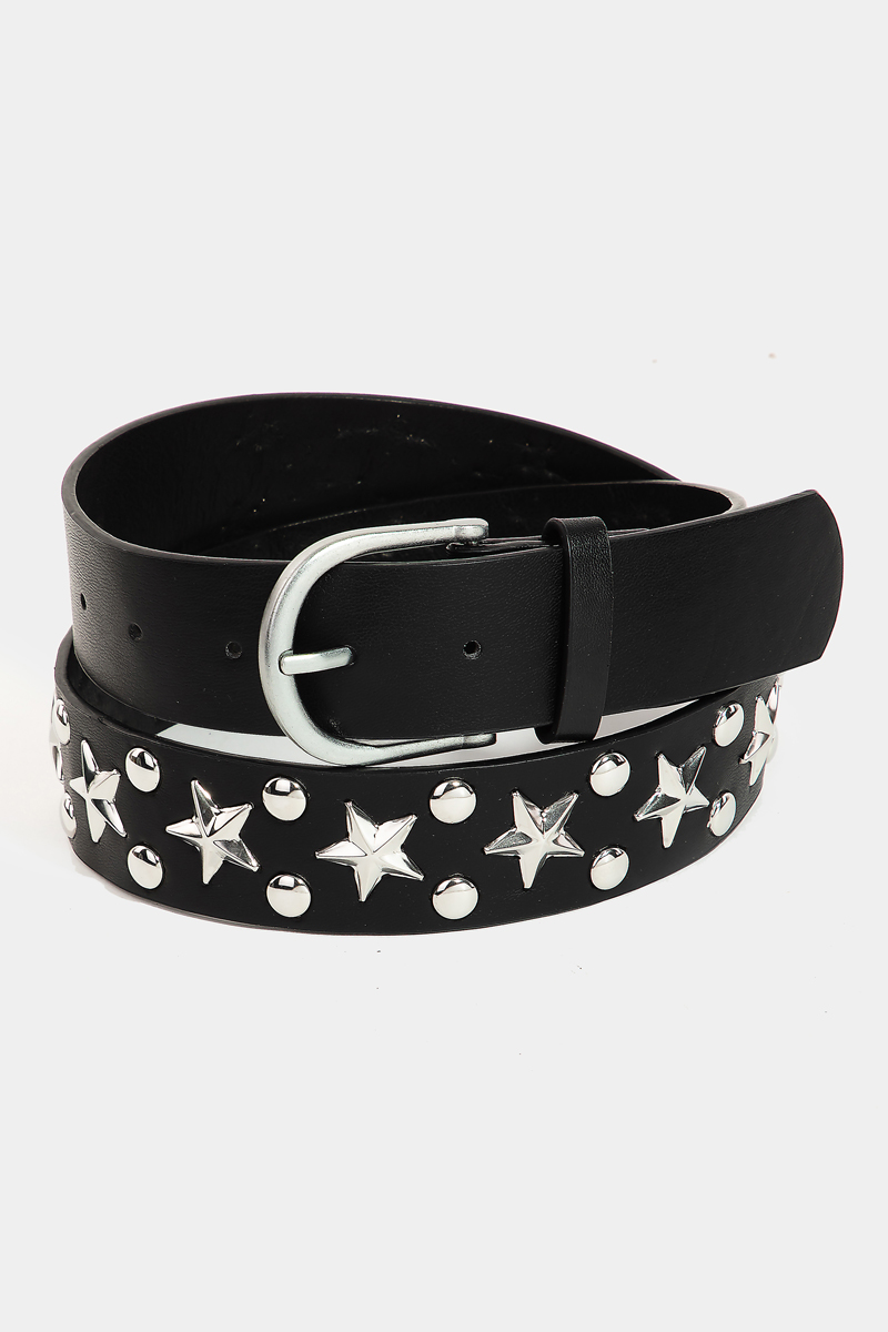 Studded Stars Western Link Vegan Leather Belt