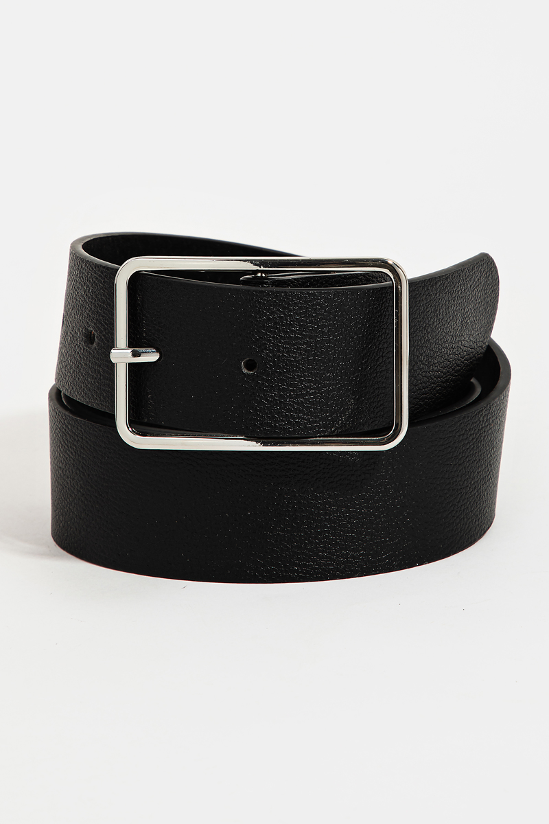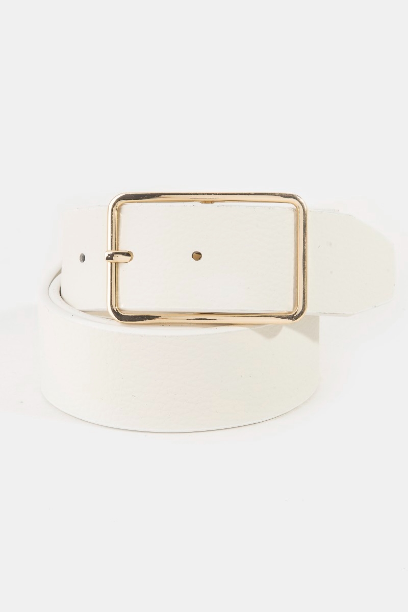 Hammered Oval Buckle Embroidered Vegan Leather Belt