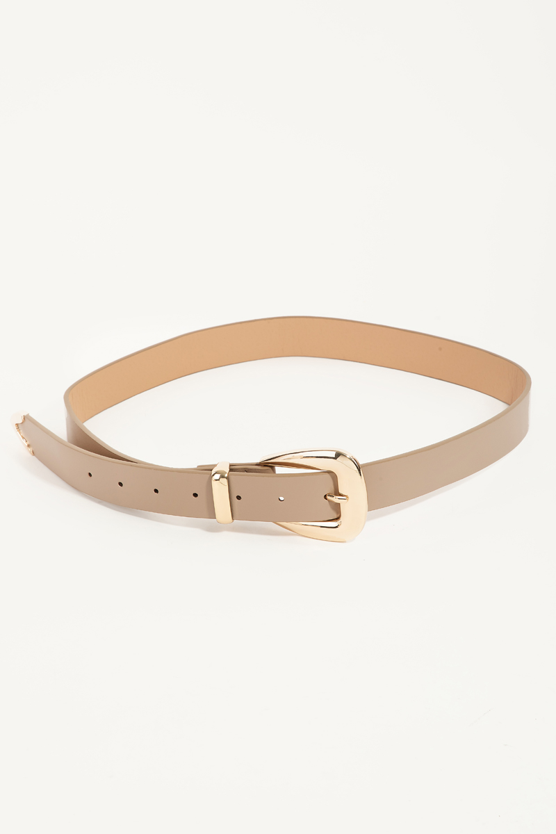 - This faux leather belt displays a fashionable smooth style. Discover the perfect balance of functionality and fashion.