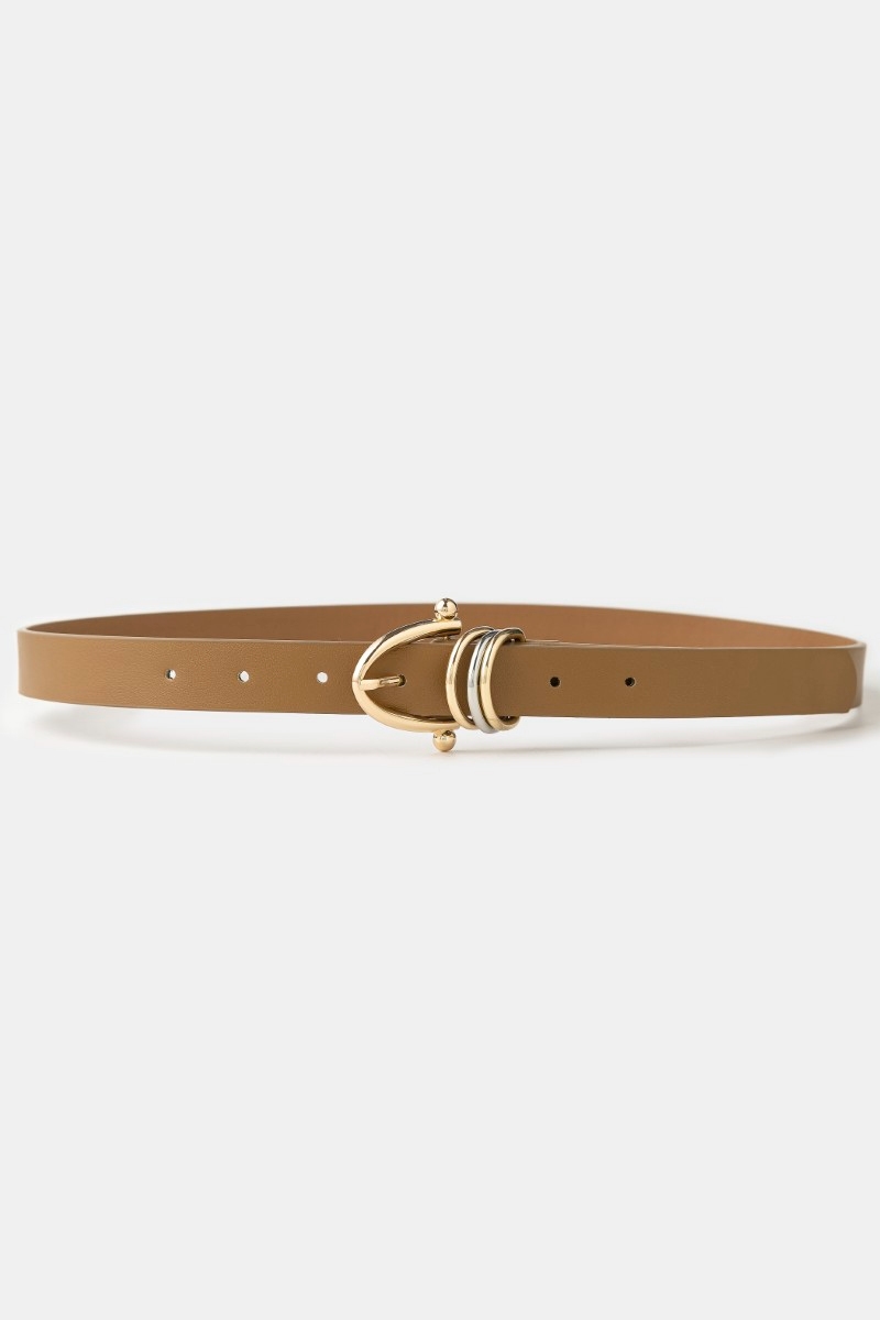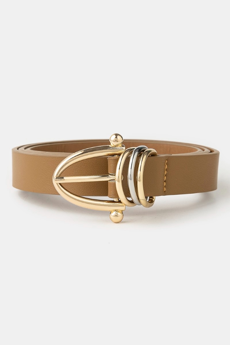 - This faux leather belt features a fashionable triple ring style. Embark on a journey of sartorial refinement as this faux leather belt effortlessly complements your fashion sense.
