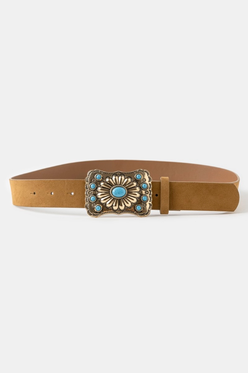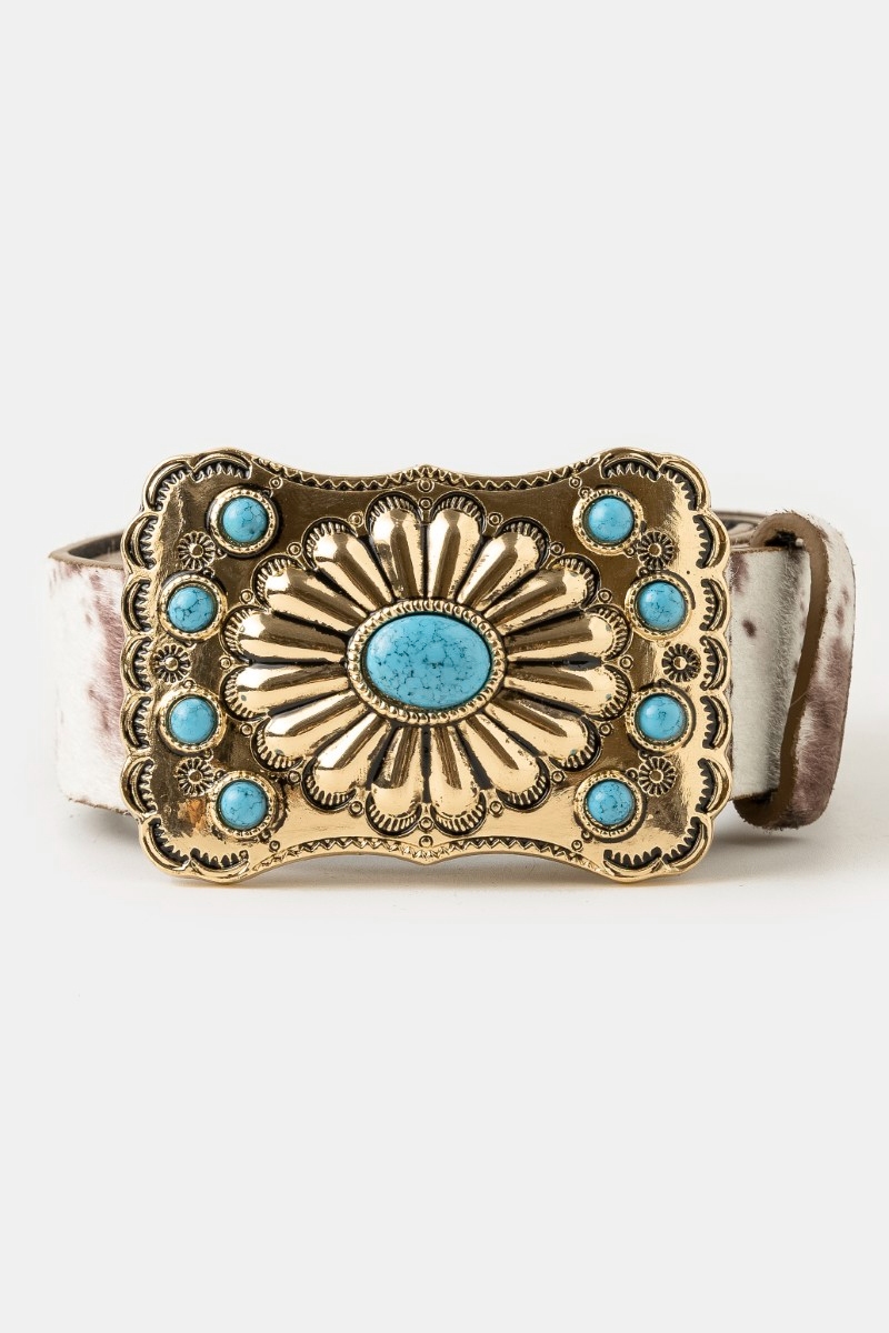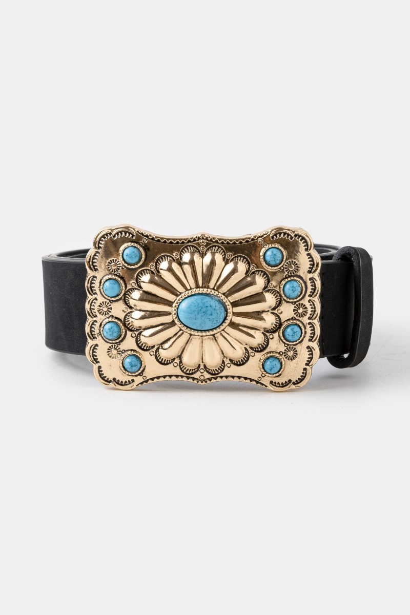 - This belt showcases a unique western style large ornate buckle style. Explore a refined sense of style with this belt, seamlessly elevating the chic factor of your look.