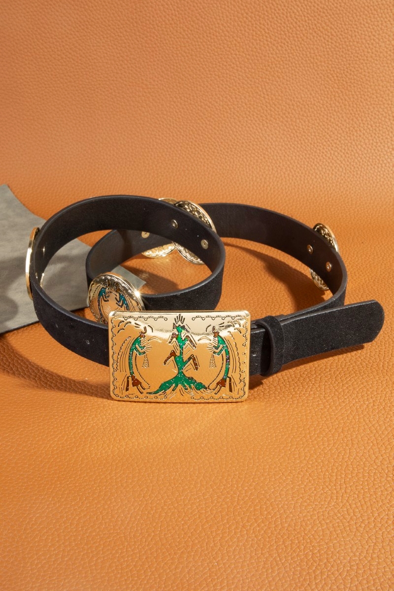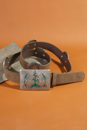 • This leather belt showcases a unique western style square buckle style. Embark on a journey of sartorial refinement as this leather belt effortlessly complements your fashion sense.