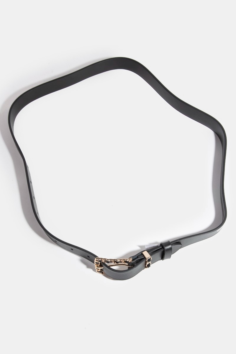- This belt showcases a timeless vegan leather chain braid buckle style. Experience a burst of creativity in accessorizing as this piece effortlessly sets the tone for your unique style.