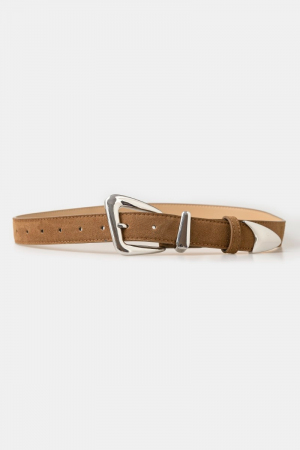 • This leather belt introduces a stunning warped buckle style. Savor the craftsmanship that goes beyond the ordinary, as this leather belt effortlessly captivates attention.