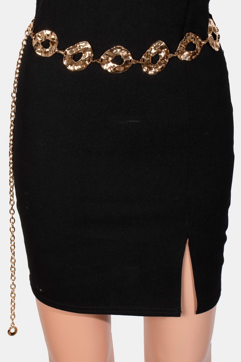- This belt displays a vibrant warped metallic flat hoop chain link style. Indulge in the allure of exquisite craftsmanship as this belt effortlessly adds a touch of luxury to your attire.