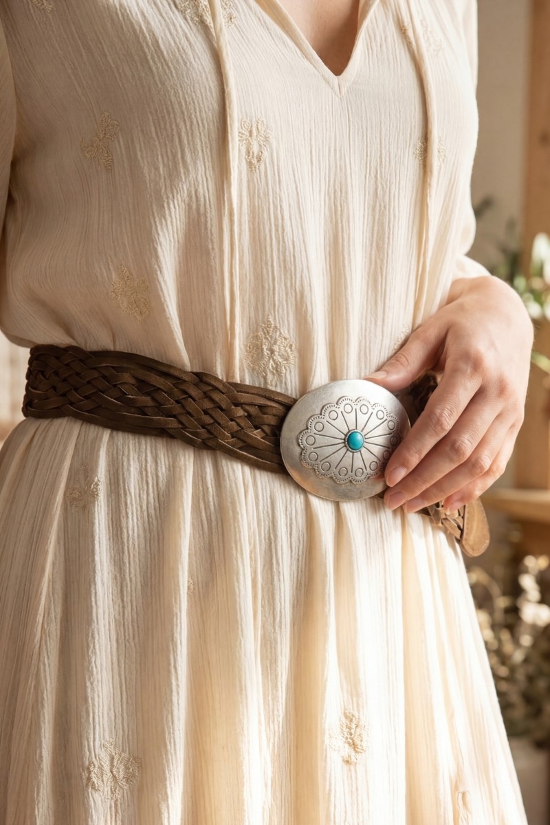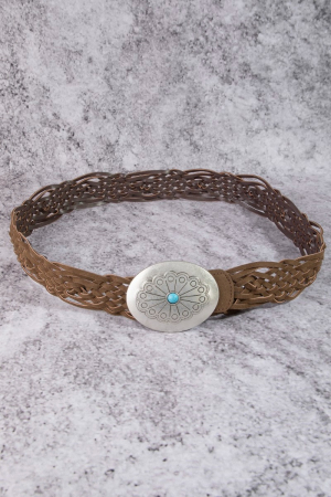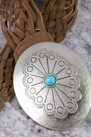 • This leather belt introduces a stunning western braided concho buckle vegan style. Discover the perfect balance of functionality and fashion.