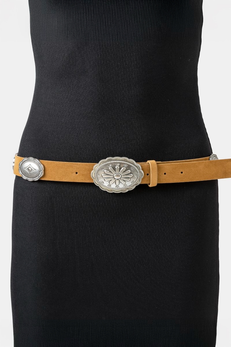 - This belt showcases a timeless western oval floral buckle style. Indulge in the artistry of accessorizing with this unique piece.