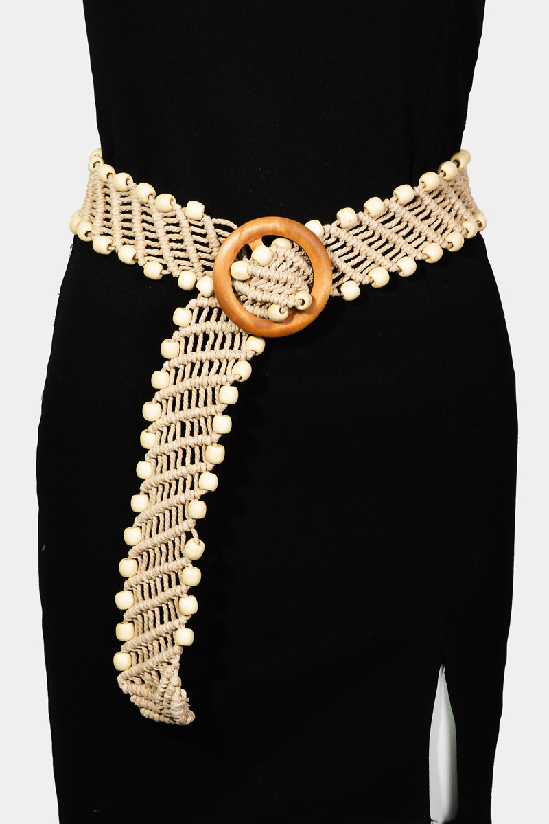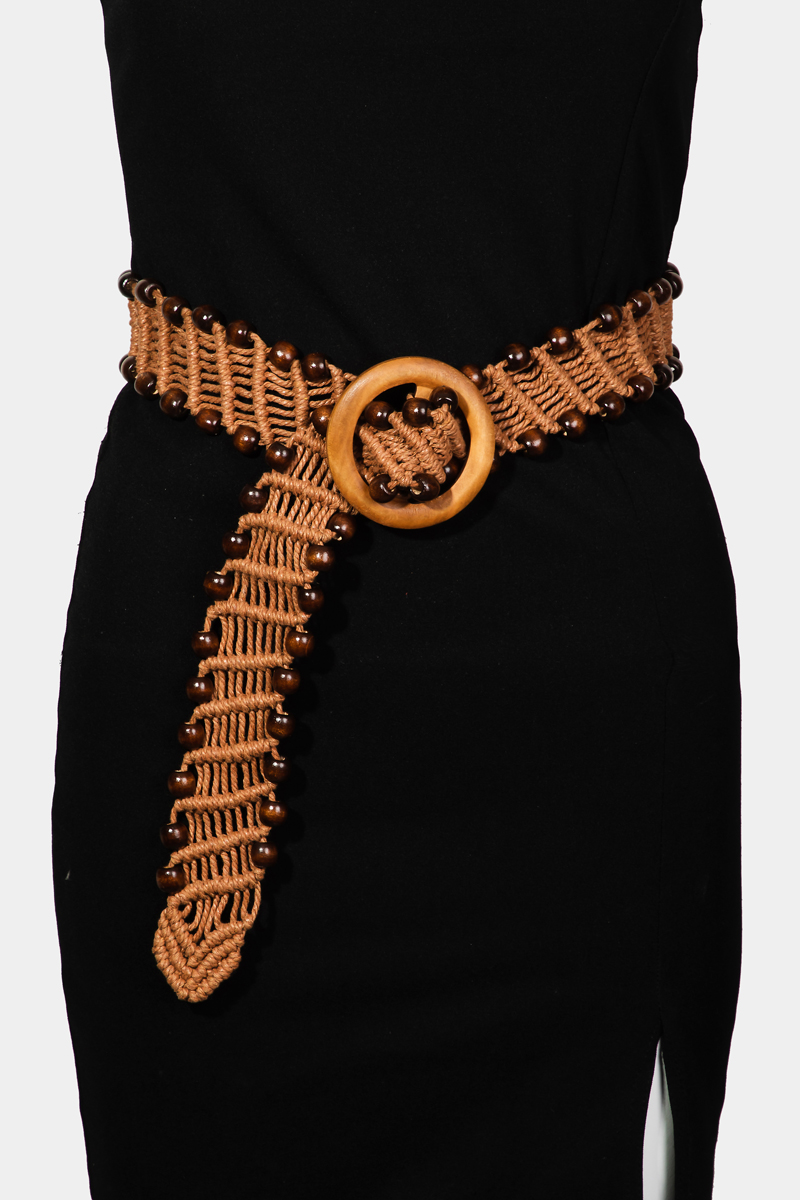 • This braided belt introduces a stunning wooden circle buckle style. Indulge in the allure of exquisite craftsmanship as this braided belt effortlessly adds a touch of luxury to your attire.