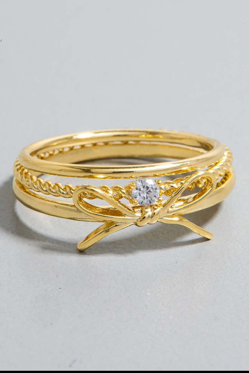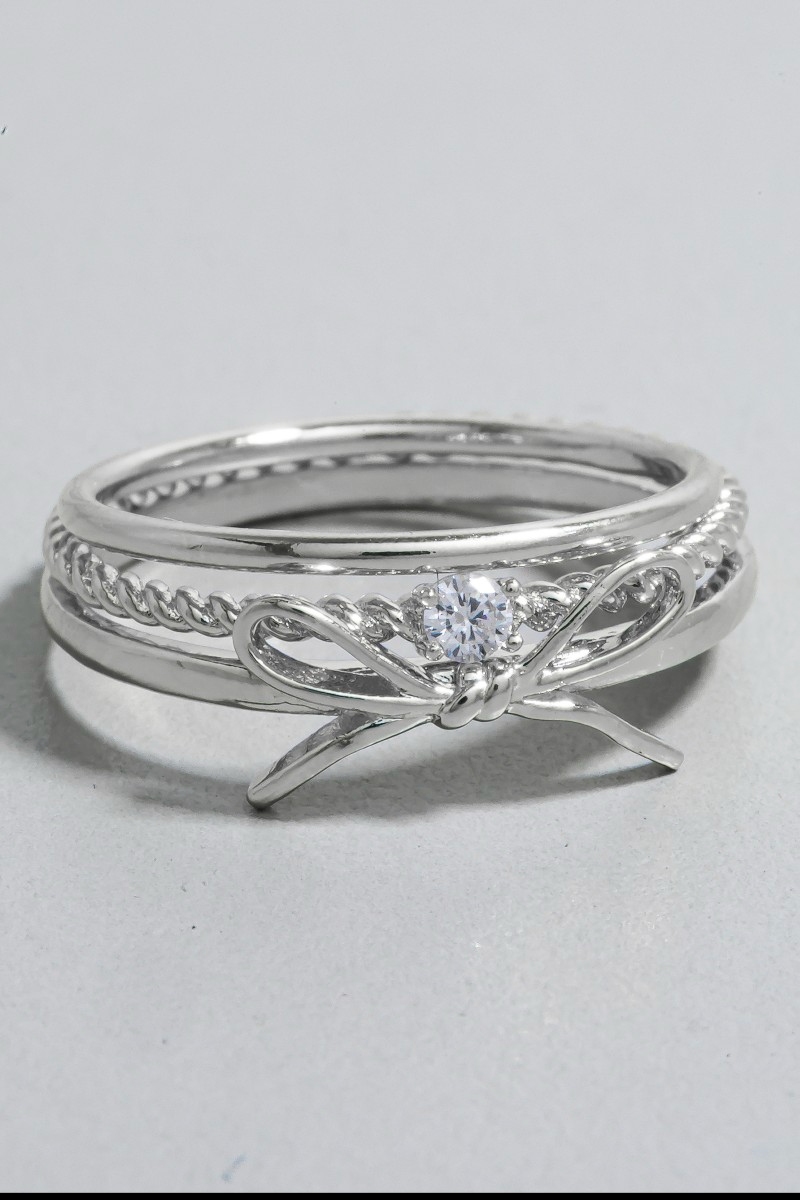 - This ring set introduces a unique 3pc bow and cubic zirconia band rings set style. Savor the allure of detailed craftsmanship in this exquisite ring set.