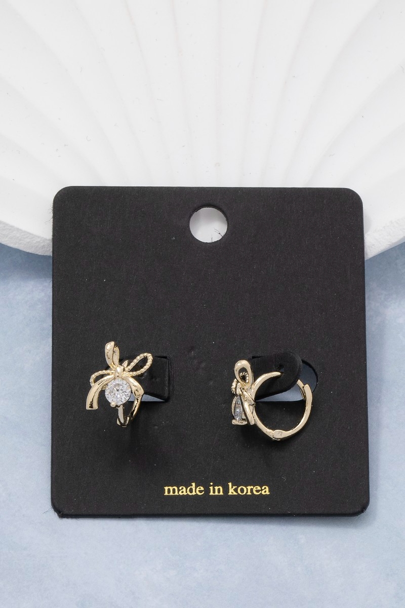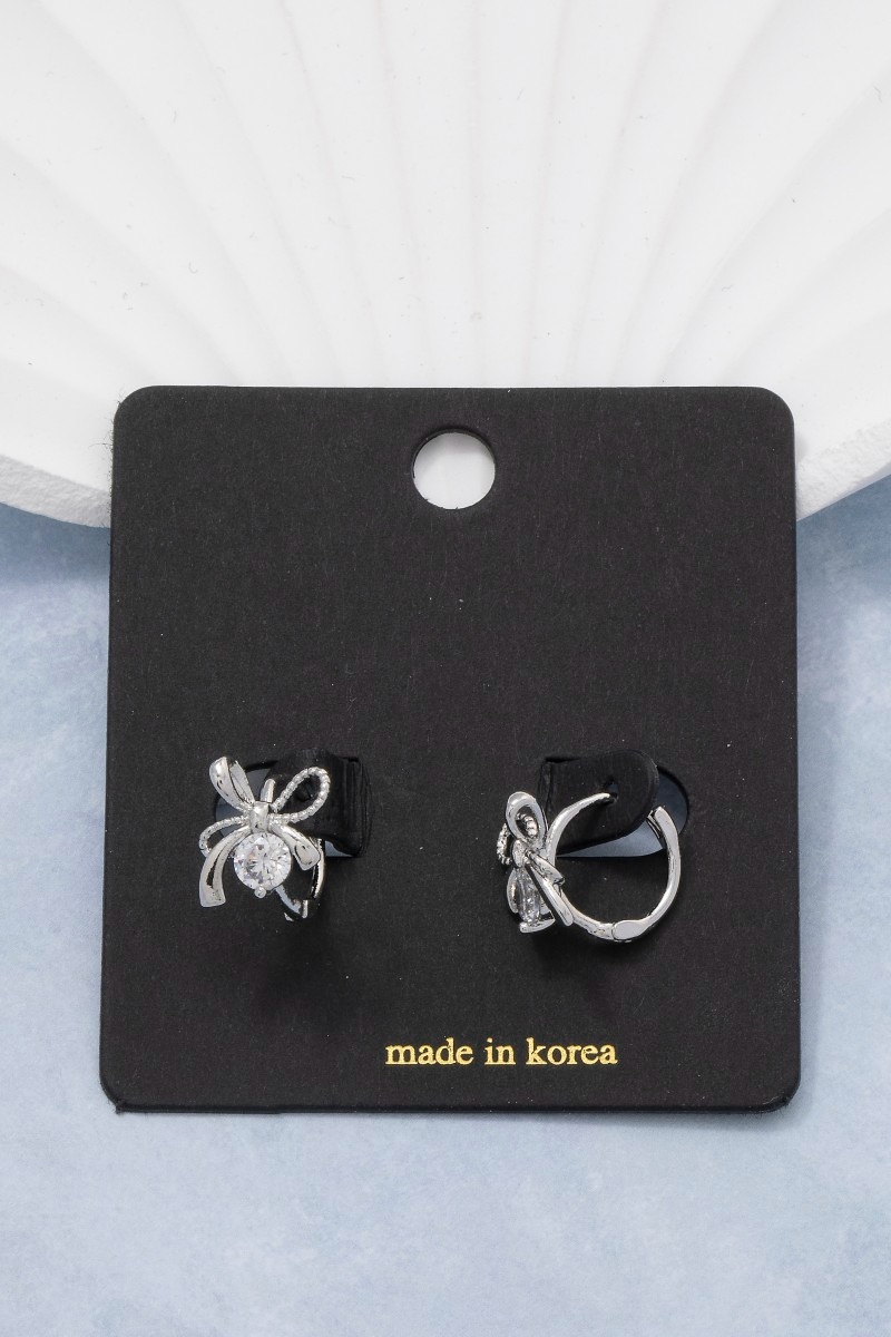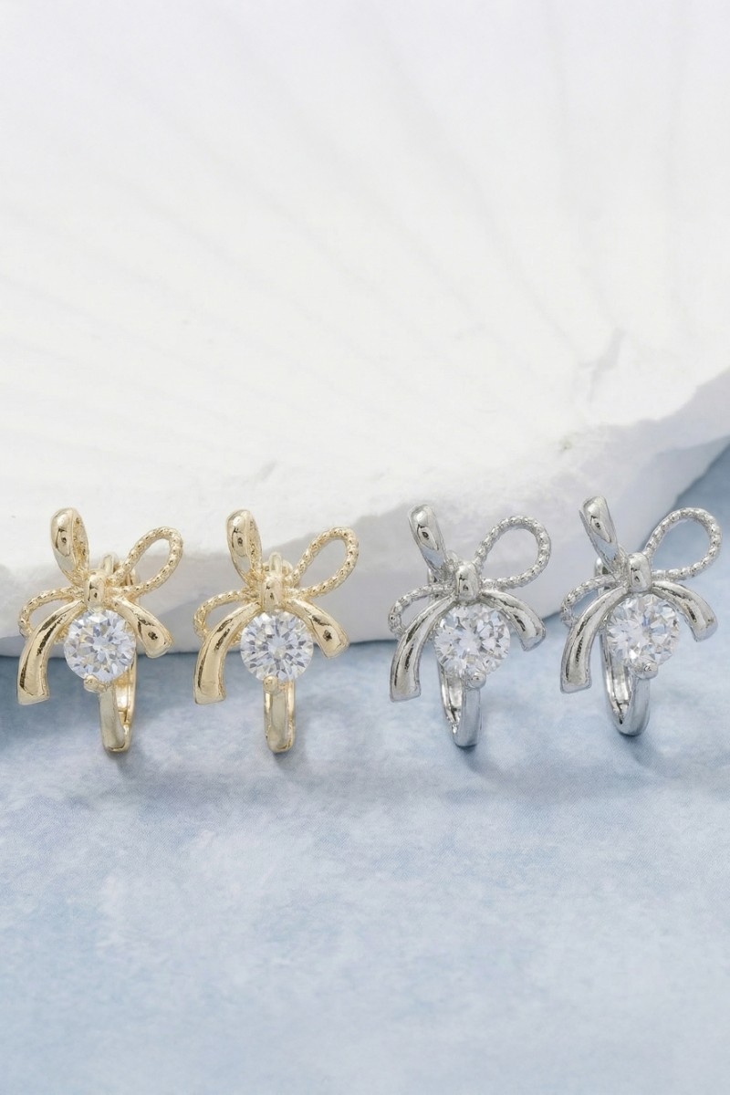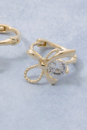 - This pair of hoop earrings brings a unique cz gem and ribbon bow mini style. Witness the perfect fusion of style and functionality as this pair of hoop earrings effortlessly complements your lifestyle.