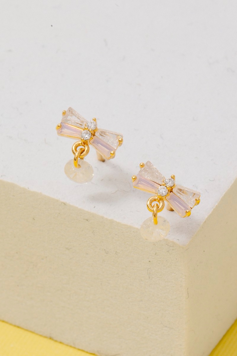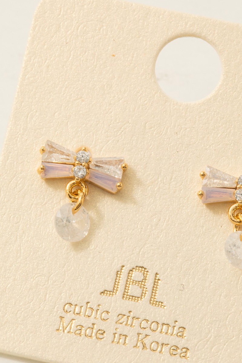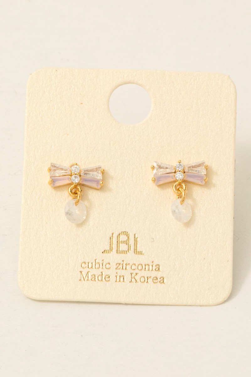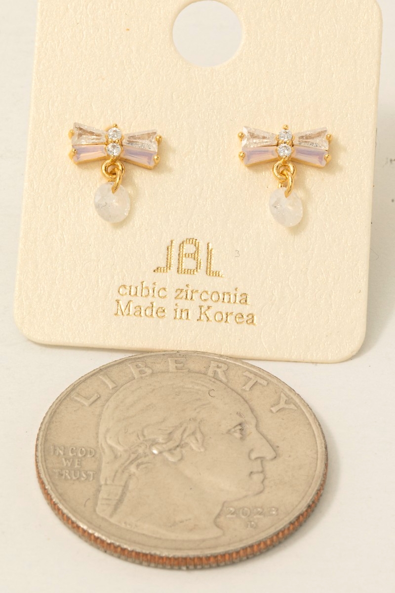 - This pair of earrings showcases a timeless cz mini ribbon bow style. Discover the perfect balance of subtlety and flair as this pair of earrings effortlessly completes your look.