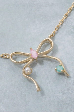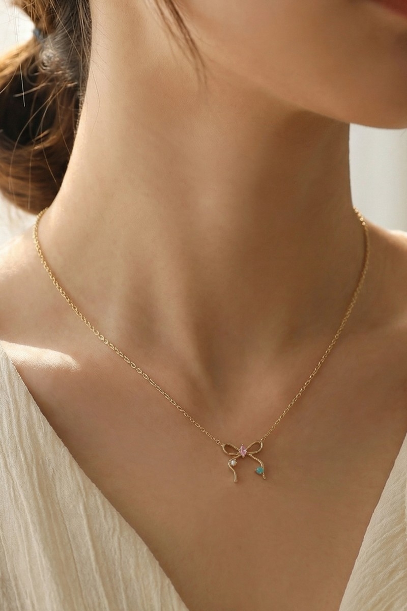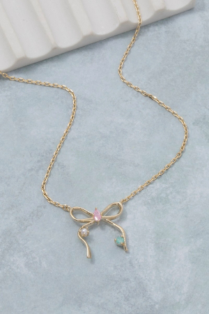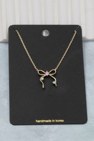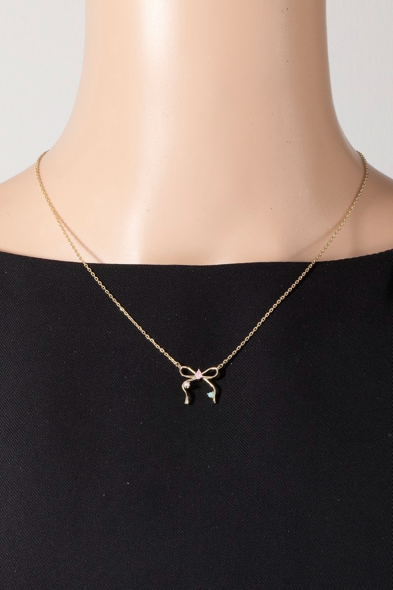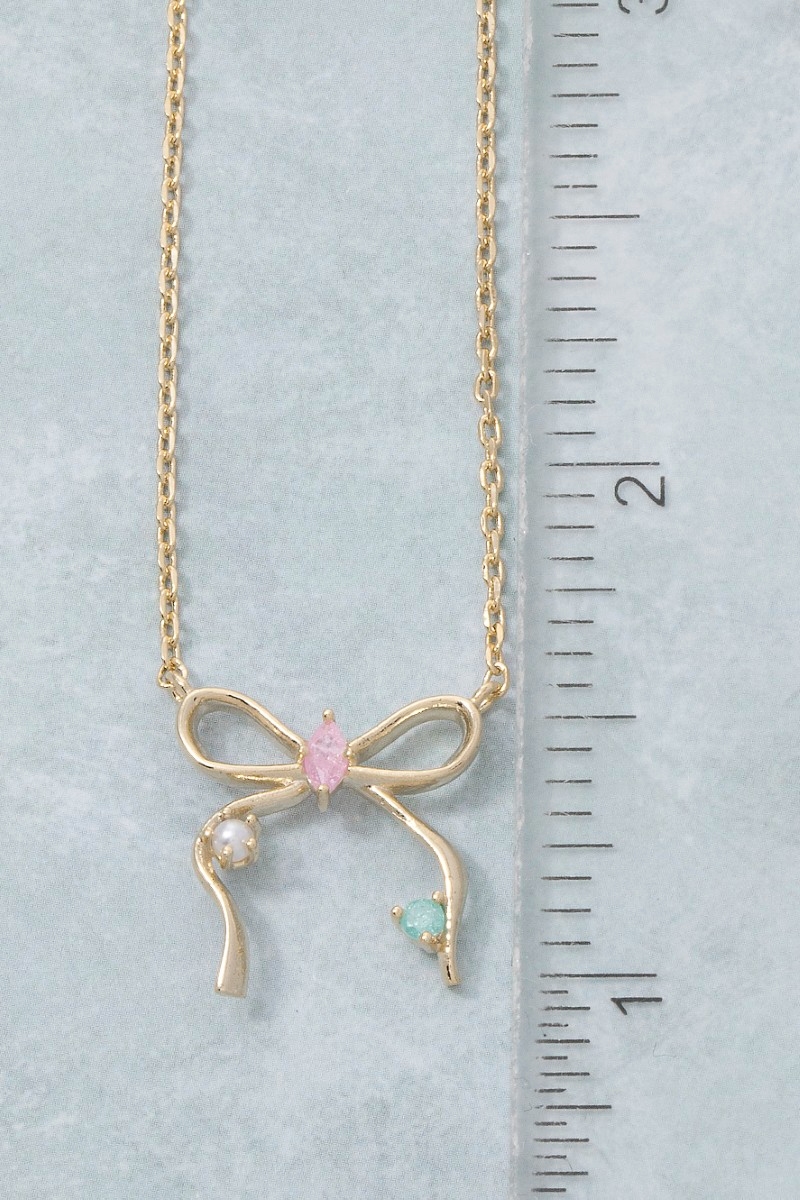 - This pendant necklace displays a fashionable cz thin ribbon bow style. Elevate your ensemble with this pendant necklace that effortlessly captures the essence of refined fashion.