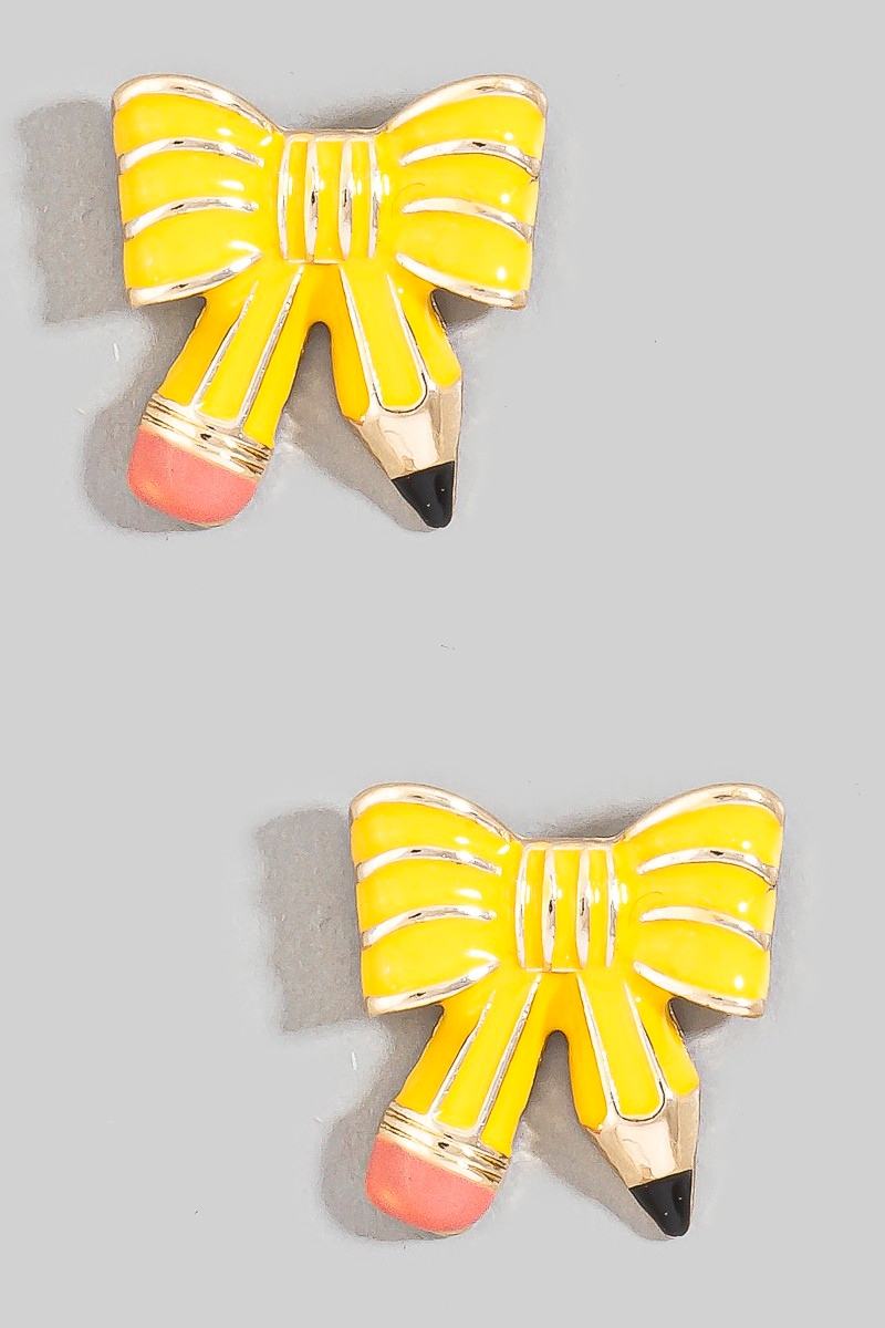 - This pair of stud earrings adds a modern enamel pencil bow style. Celebrate individual style with this versatile, eye-catching addition.