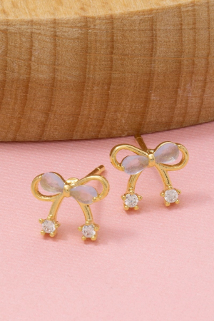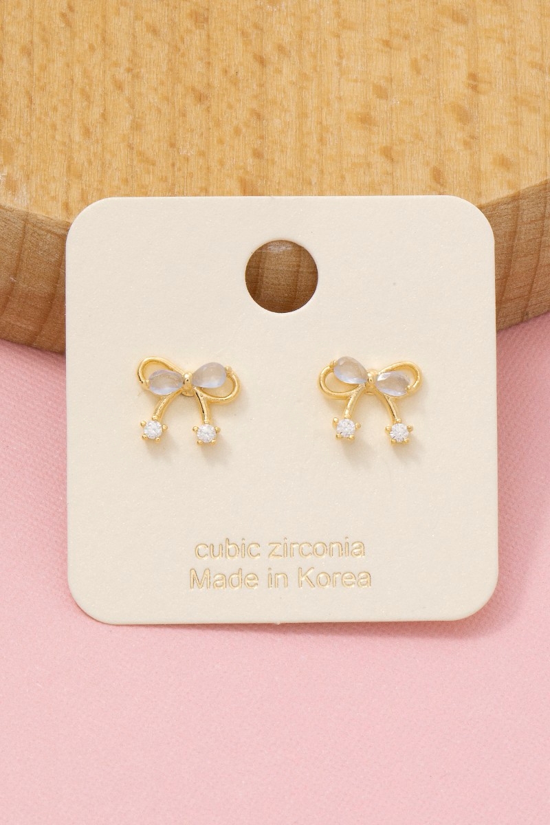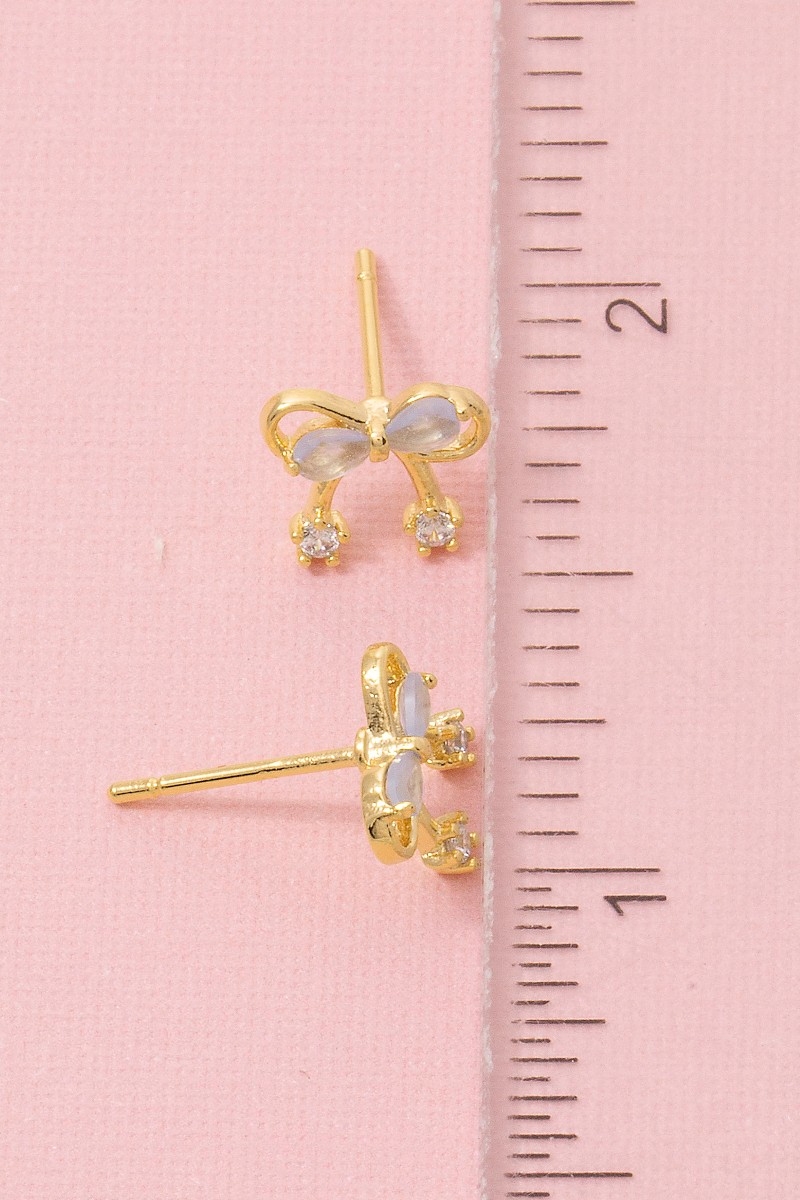 - This pair of stud earrings introduces a stunning gold dipped cubic zirconia mini ribbon bow style. Discover the perfect balance of functionality and fashion.