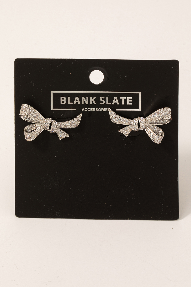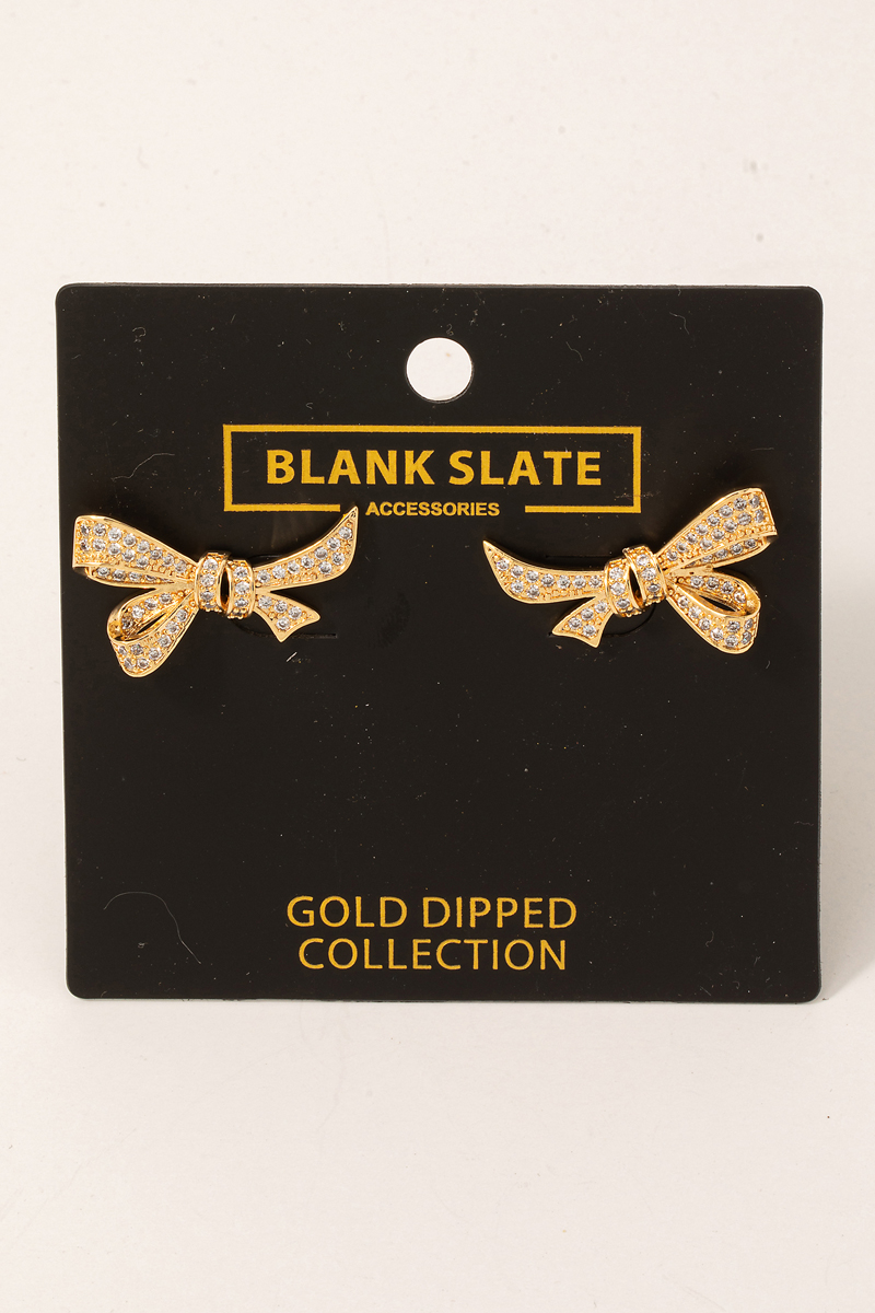 - This pair of stud earrings displays a fashionable gold dipped pave ribbon bow style. Unveil a new dimension of sophistication as this pair of stud earrings effortlessly enhances the elegance of your ensemble.