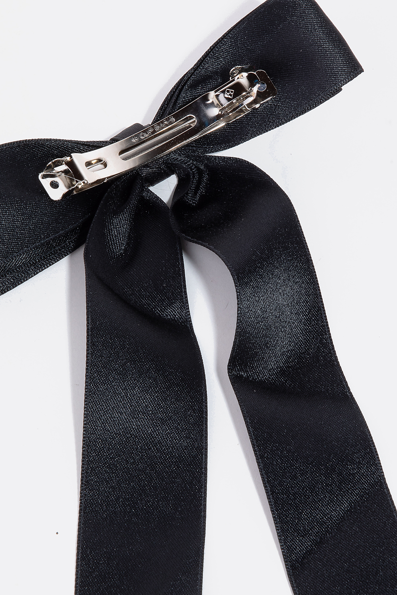 - This hair clip showcases a unique 2pc long satin ribbon bow s style. Savor the allure of detailed craftsmanship in this exquisite hair clip.
