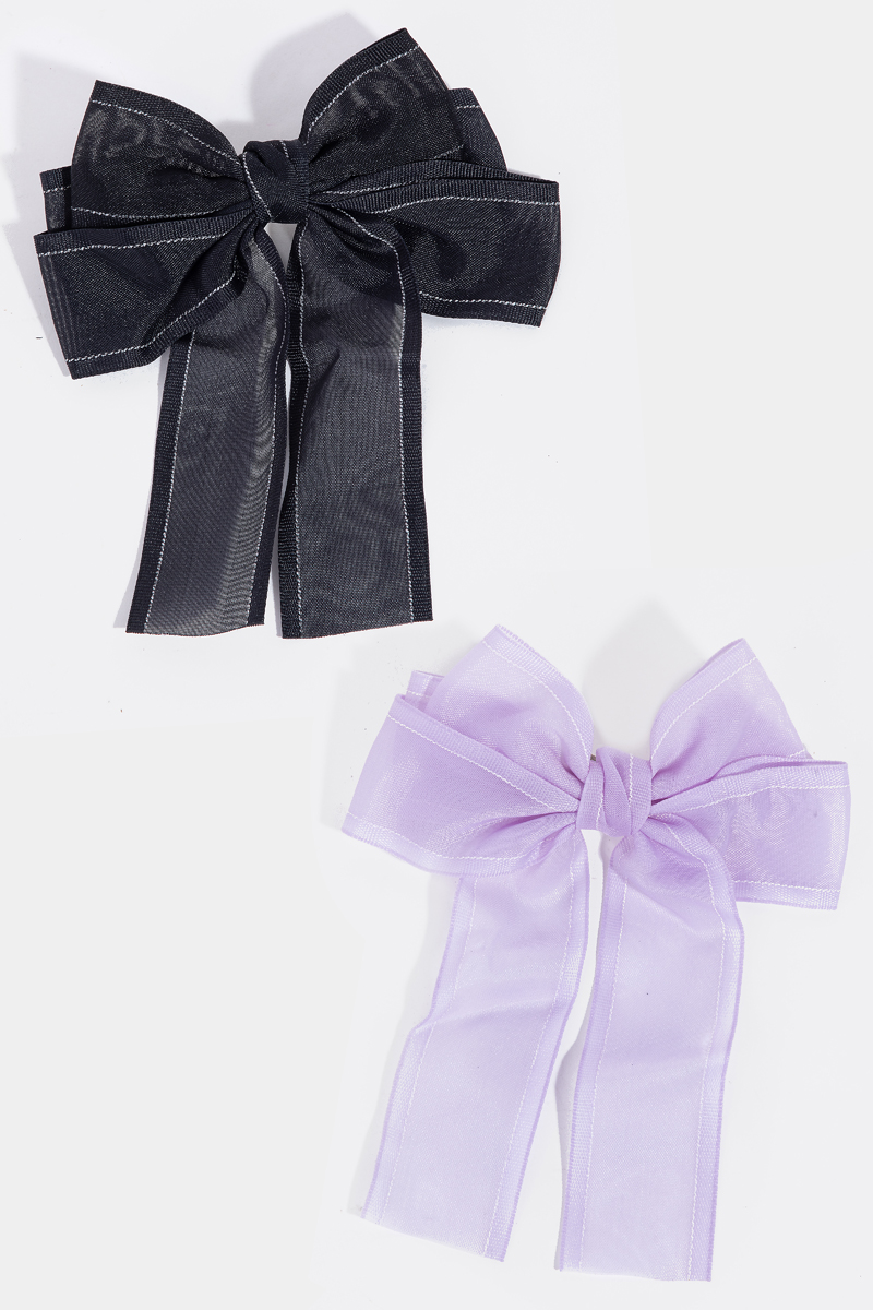 - This hair clip brings a stunning 2pc sheer ribbon bow s set style. Savor the craftsmanship that goes beyond the ordinary, as this hair clip effortlessly captivates attention.