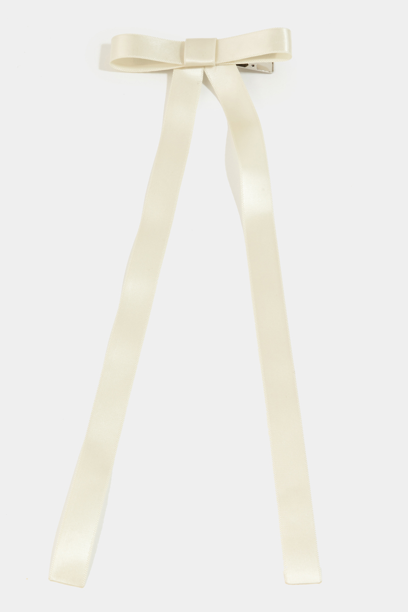 - This hair clip introduces a unique long tail thin ribbon bow style. Experience a burst of creativity in accessorizing as this piece effortlessly sets the tone for your unique style.