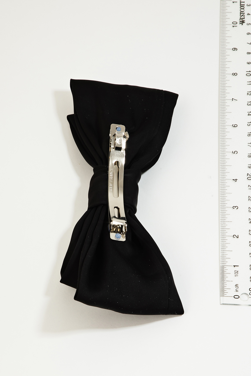 - This hair clip displays a fashionable satin ribbon bow style. Explore a refined sense of style with this accessory, seamlessly elevating the chic factor of your look.