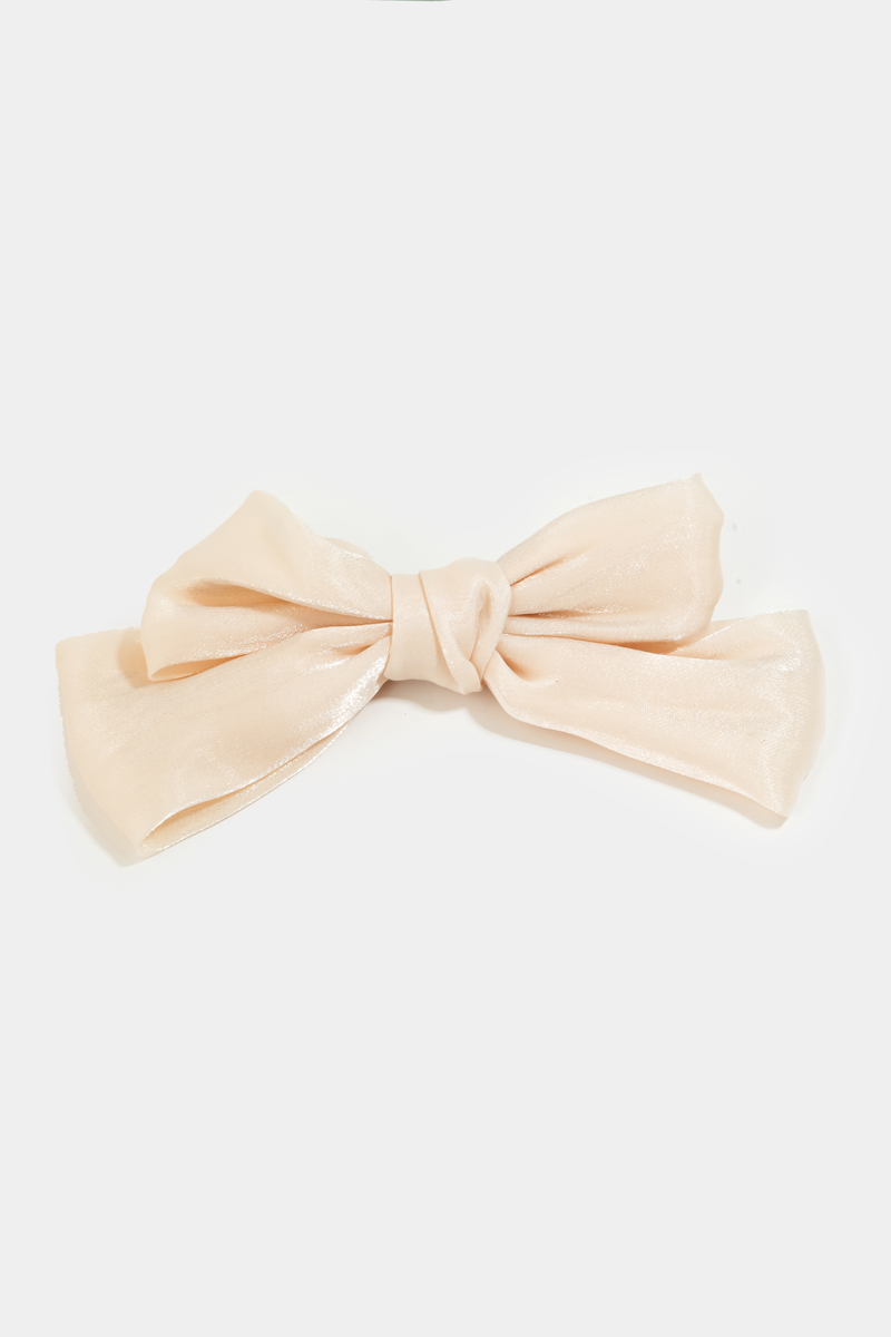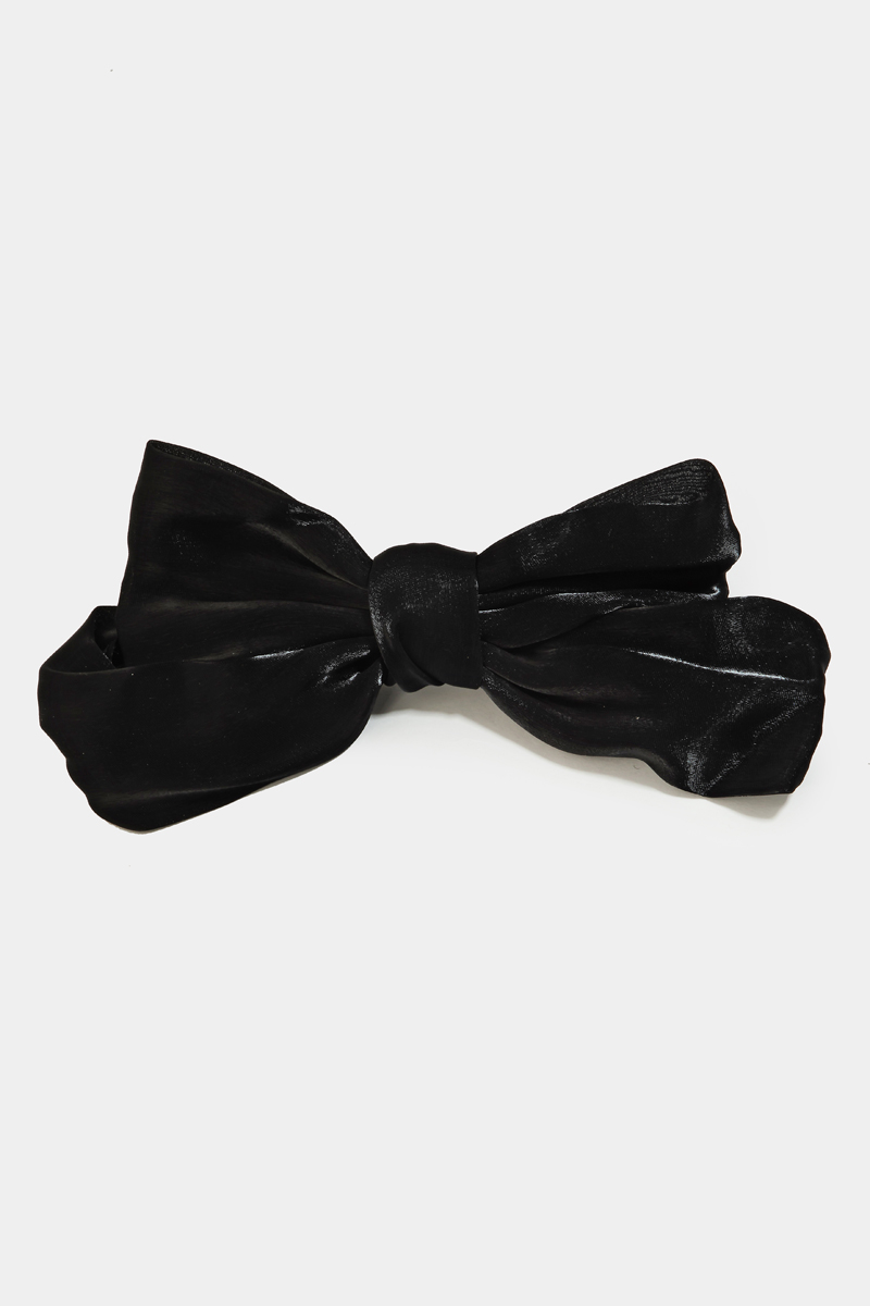 - This hair clip brings a stunning shiny ribbon bow style. Immerse yourself in the world of understated glamour as this accessory effortlessly exudes timeless appeal.