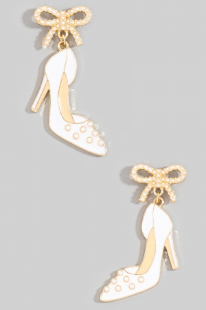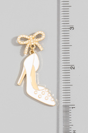 - This pair of dangle earrings showcases a timeless enamel high heels and bow stud style. Witness the perfect fusion of style and functionality as this pair of dangle earrings effortlessly complements your lifestyle.