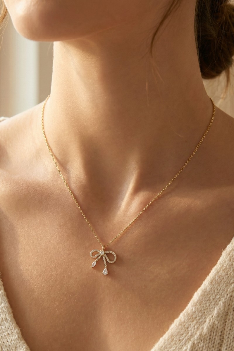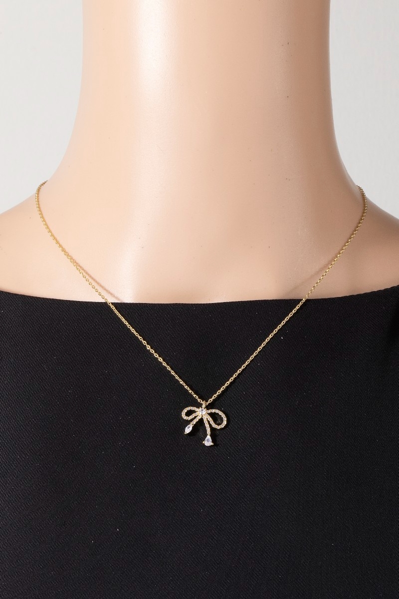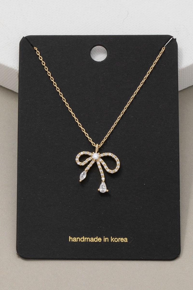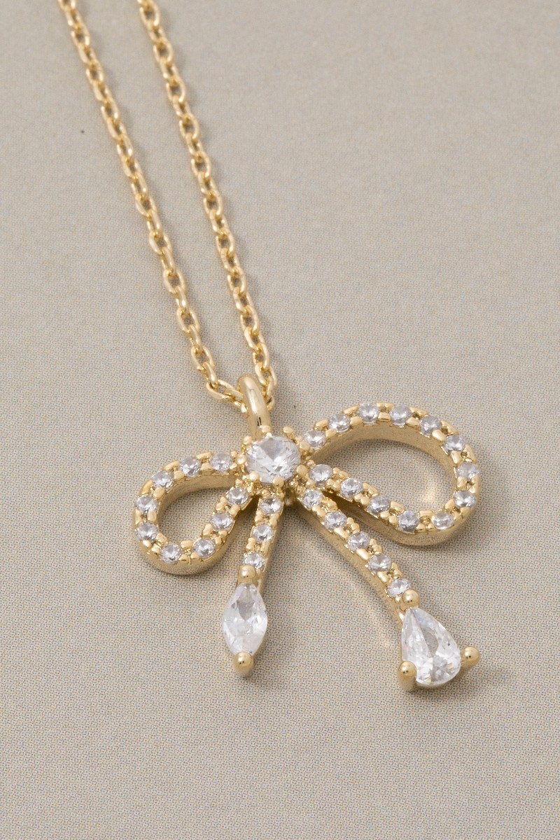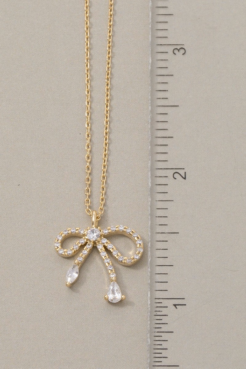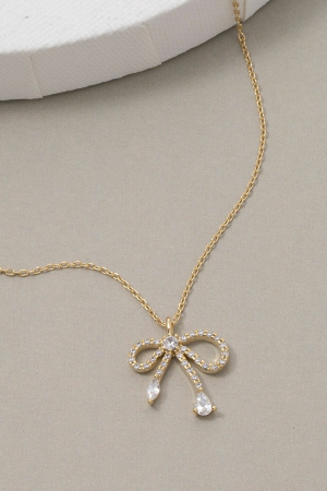 - This pendant necklace showcases a timeless pave cubic zirconia ribbon bow style. Celebrate individual style with this versatile, eye-catching addition.