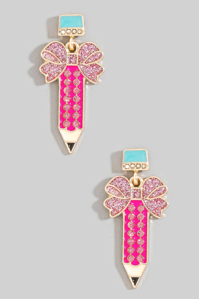 - This pair of dangle earrings brings a unique pave and enamel pencil bow stud style. Immerse yourself in the details of design, as this pair of dangle earrings effortlessly becomes a conversation starter.