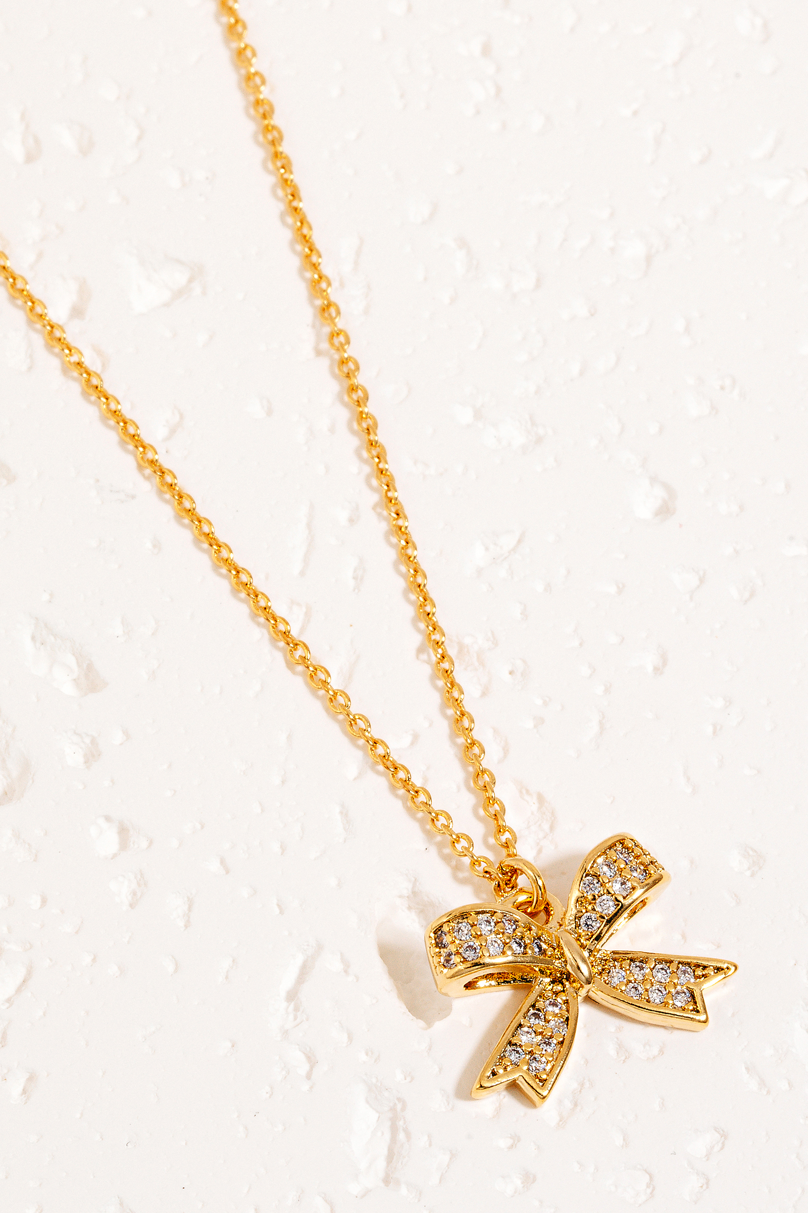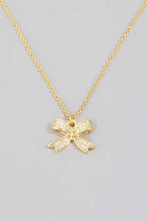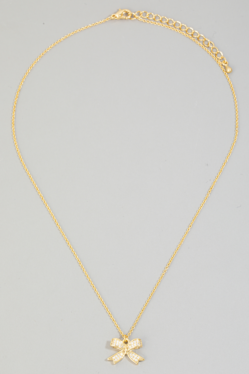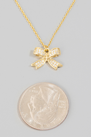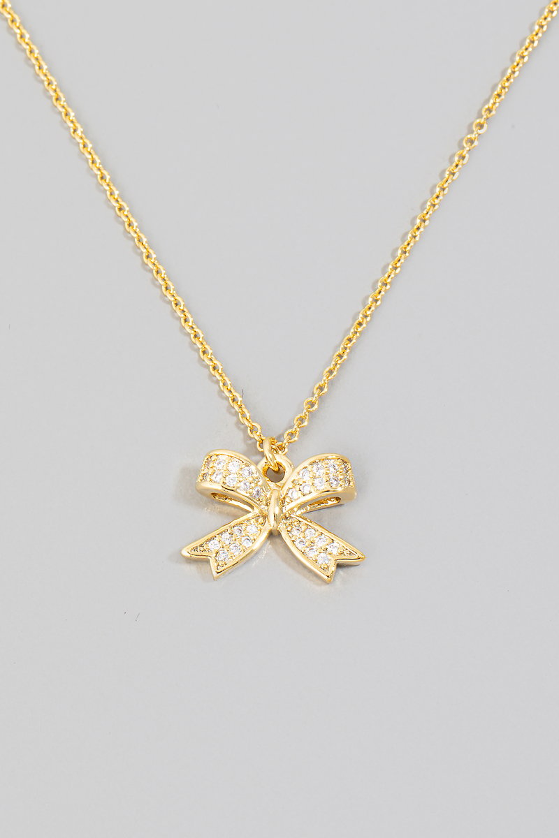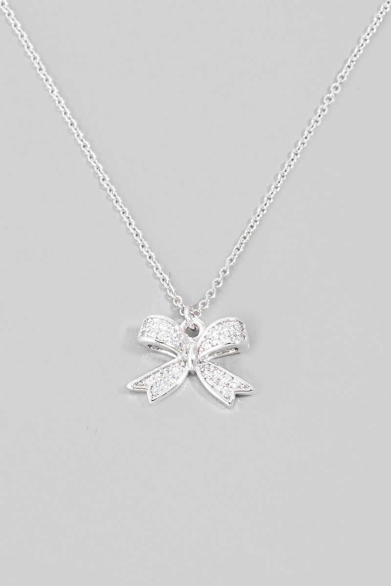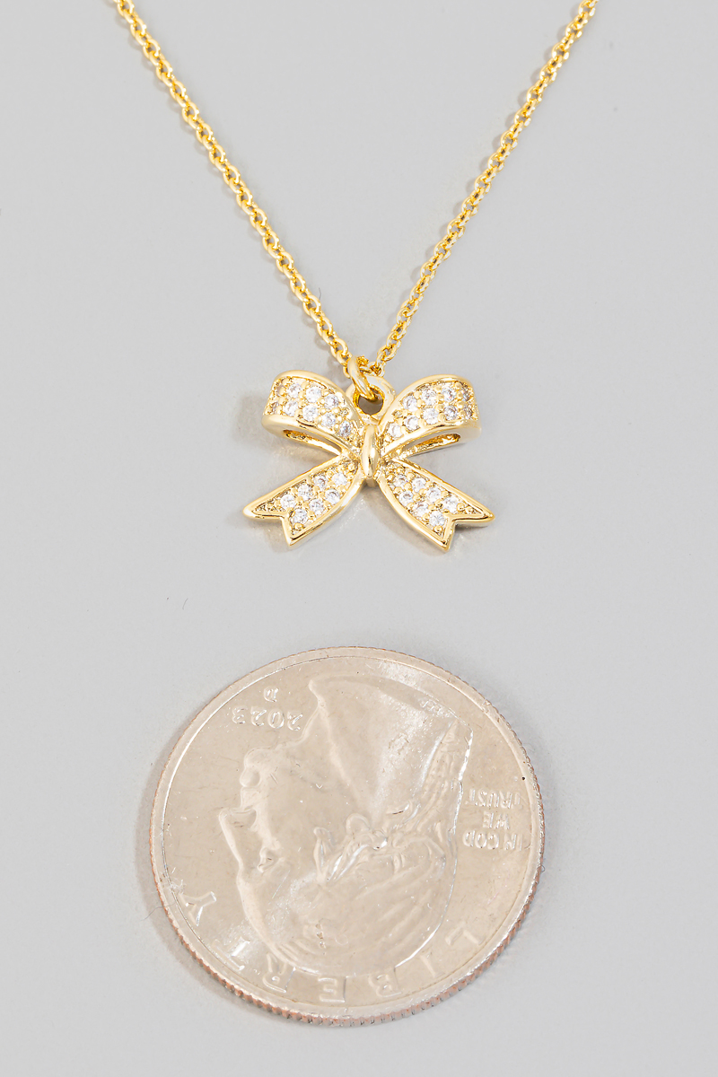 • This necklace adds a modern pave ribbon bow pendant style. Elevate your ensemble with this chic, timeless necklace.