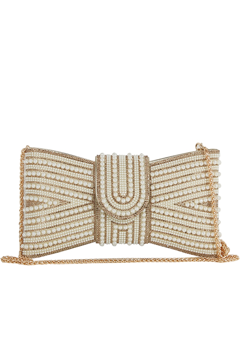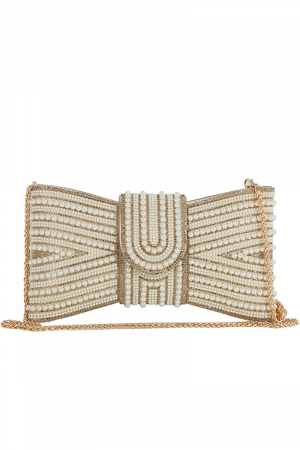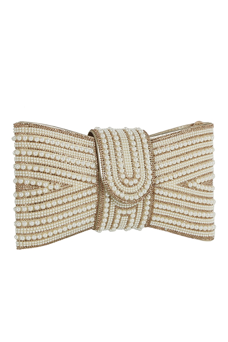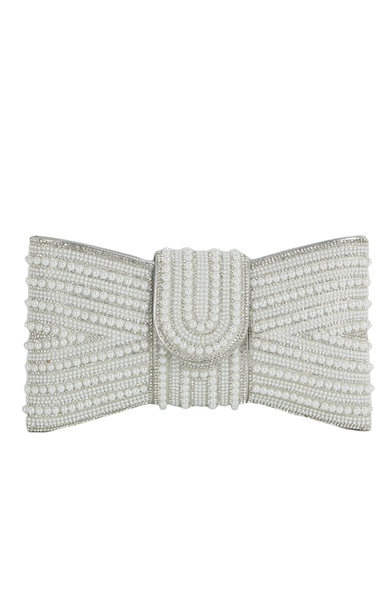 - This clutch bag brings a luxurious spangle pearl bow clutch evening bag style. Immerse yourself in the world of understated glamour as this clutch bag effortlessly exudes timeless appeal.