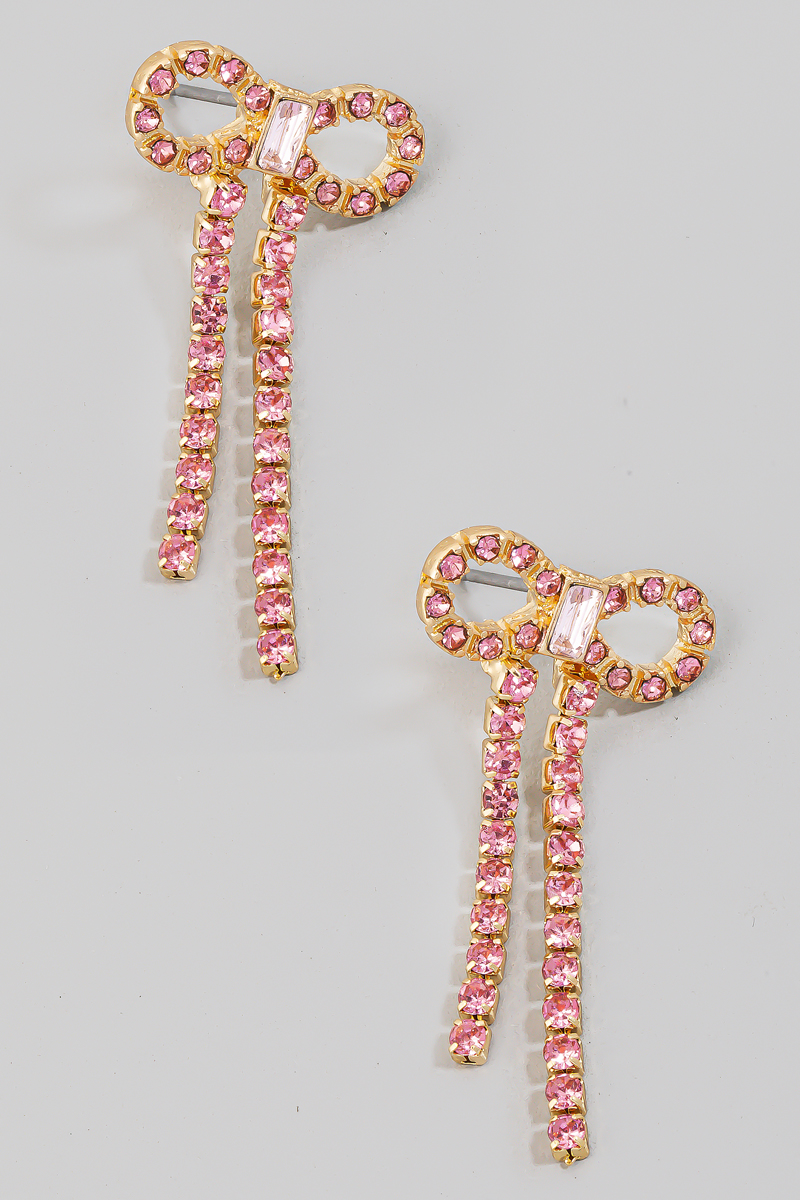 Pave And Enamel Pencil Bow Stud Dangle Earrings