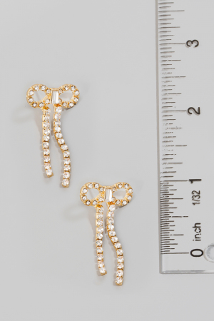 Cz Ribbon Bow And Charm Stud Earrings