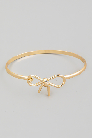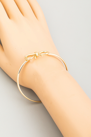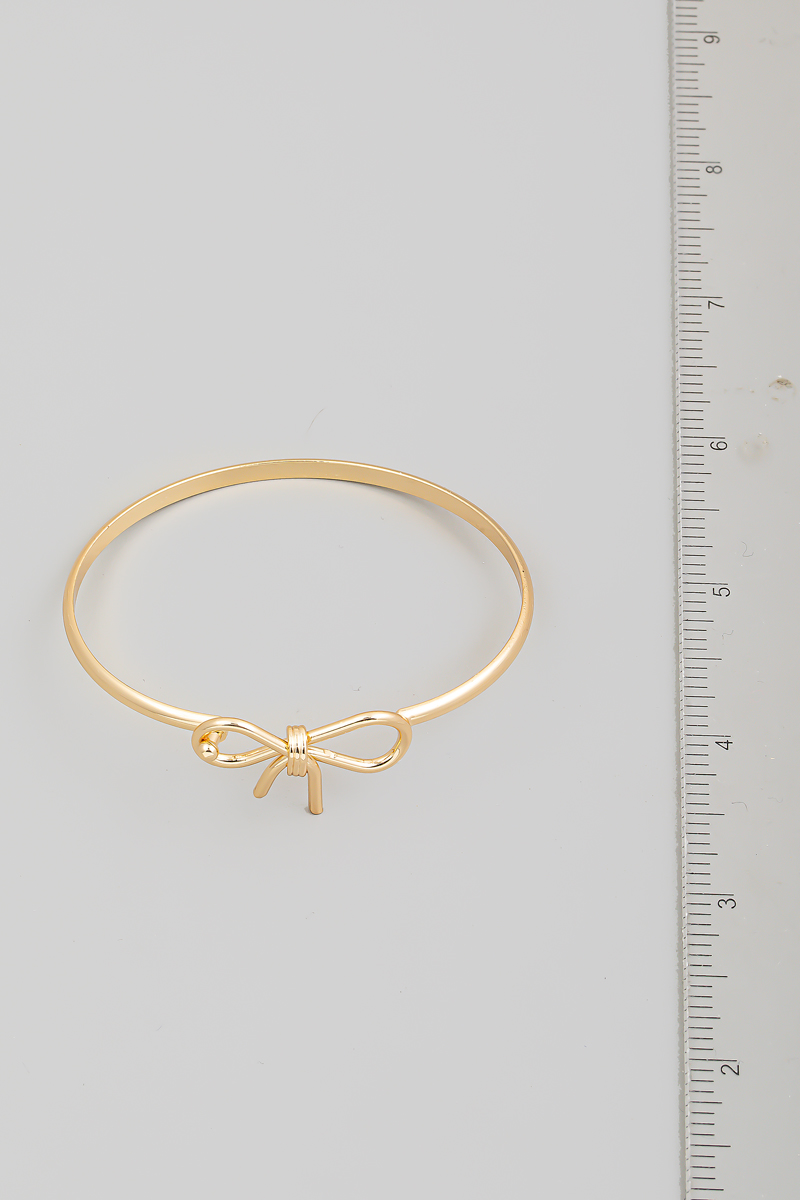 • This bangle bracelet showcases a timeless ribbon bow style. Delight in the nuanced details that make this accessory a testament to fine design and impeccable taste.