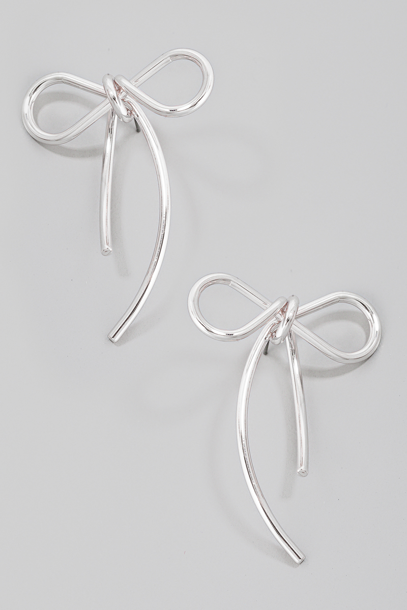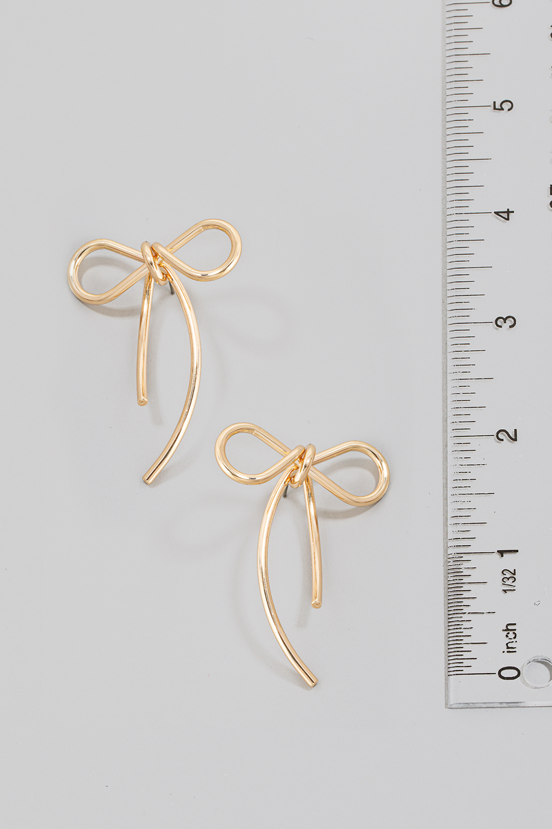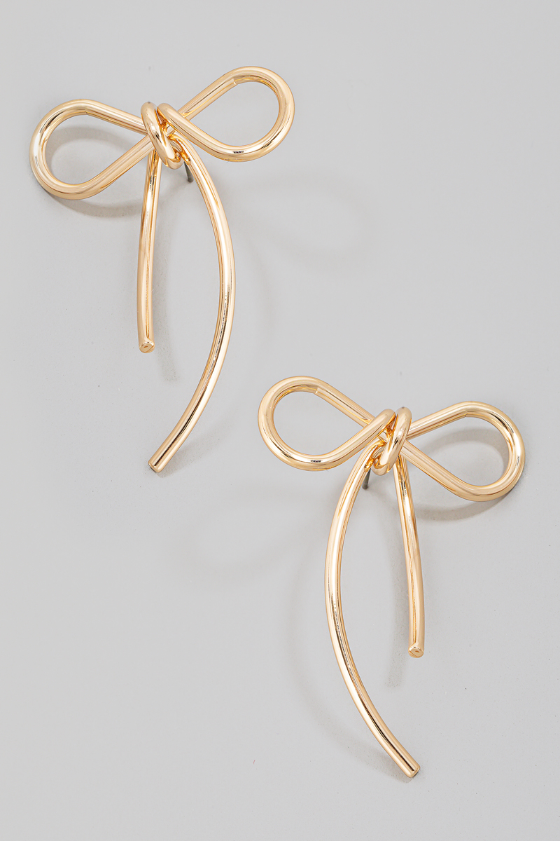 - This pair of stud earrings showcases a timeless solid metallic wire ribbon bow style. Discover the perfect balance of functionality and fashion.