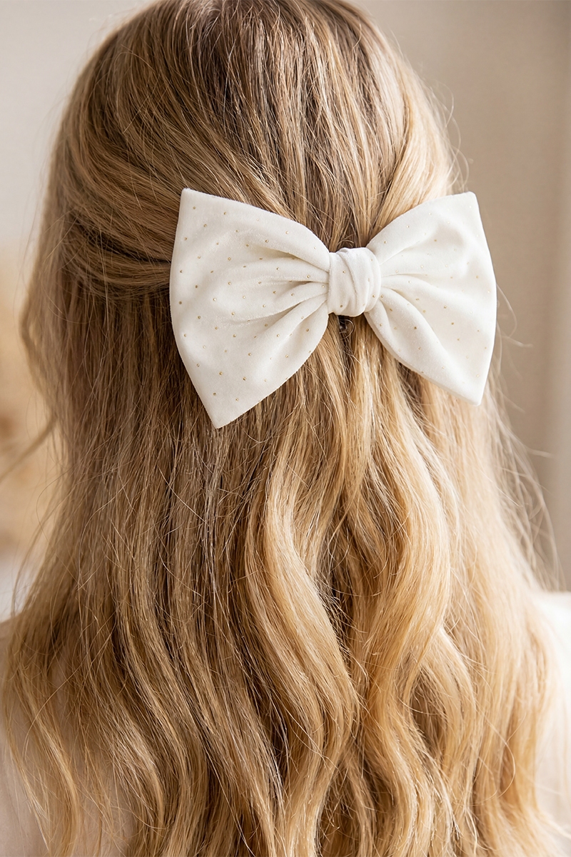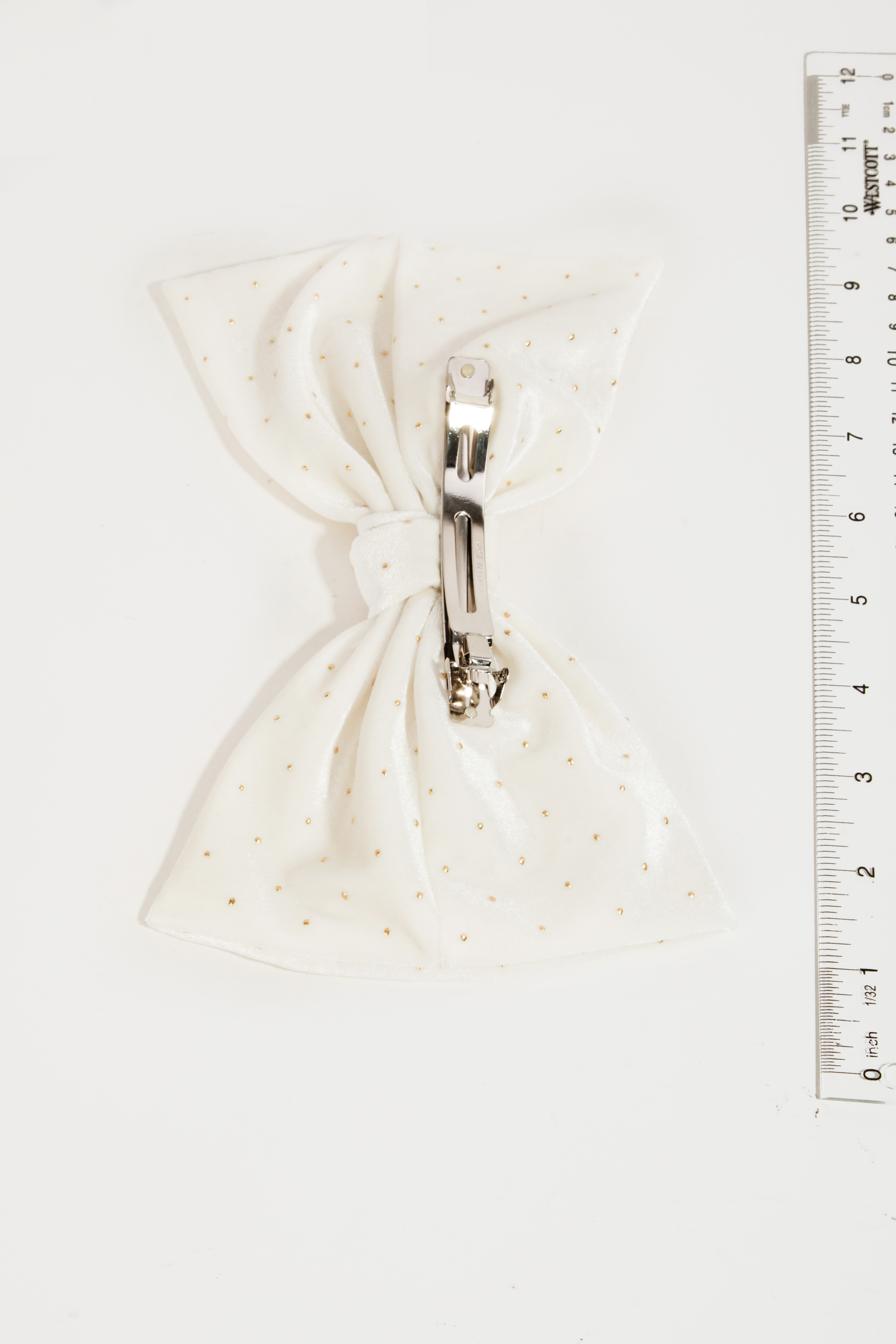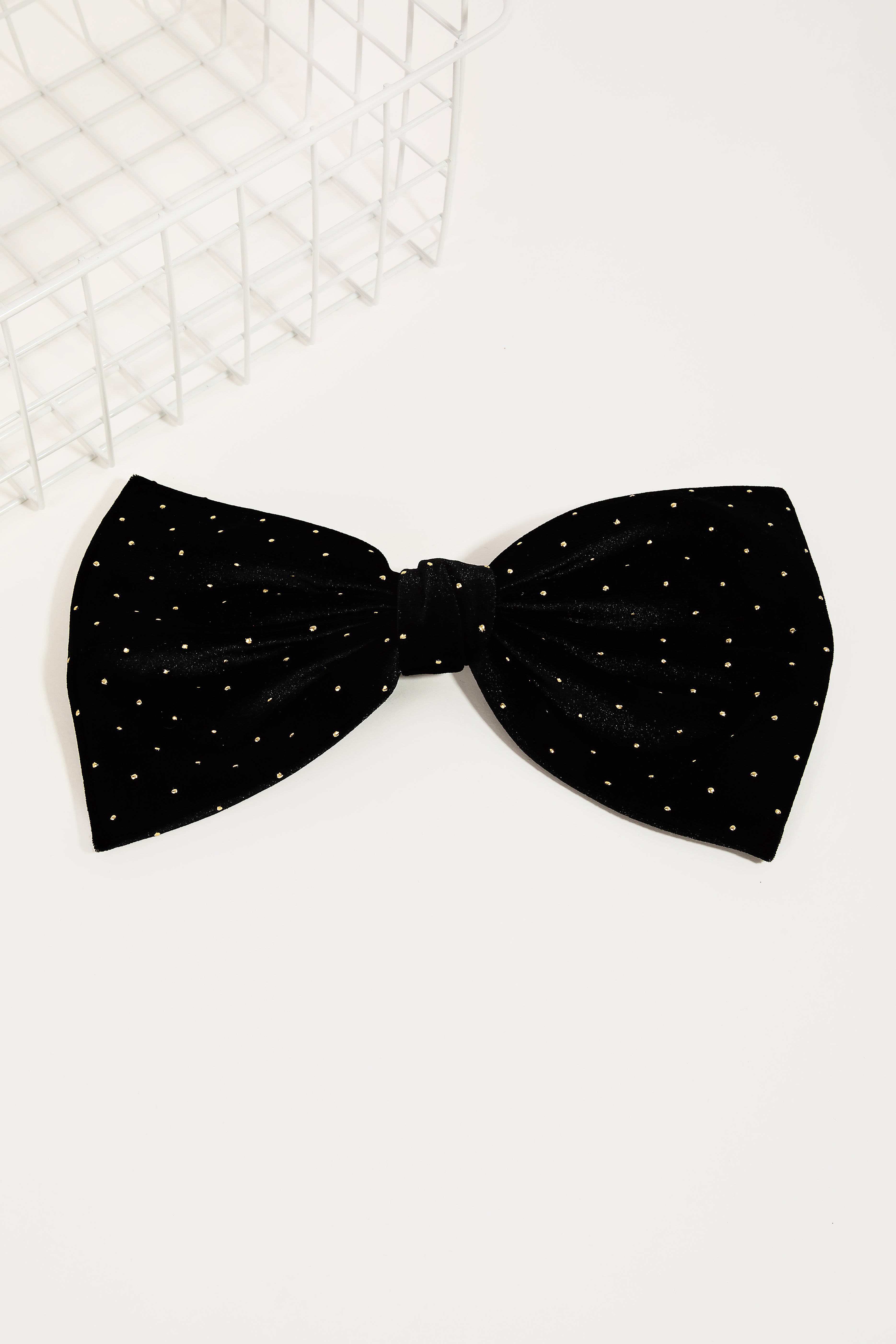 • This hair clip introduces a unique studded bow tie style. Explore a refined sense of style with this accessory, seamlessly elevating the chic factor of your look.