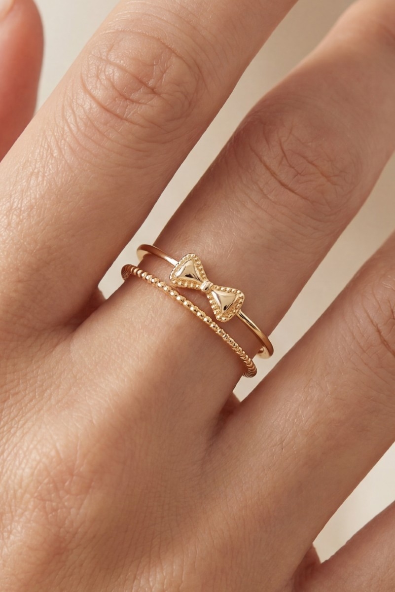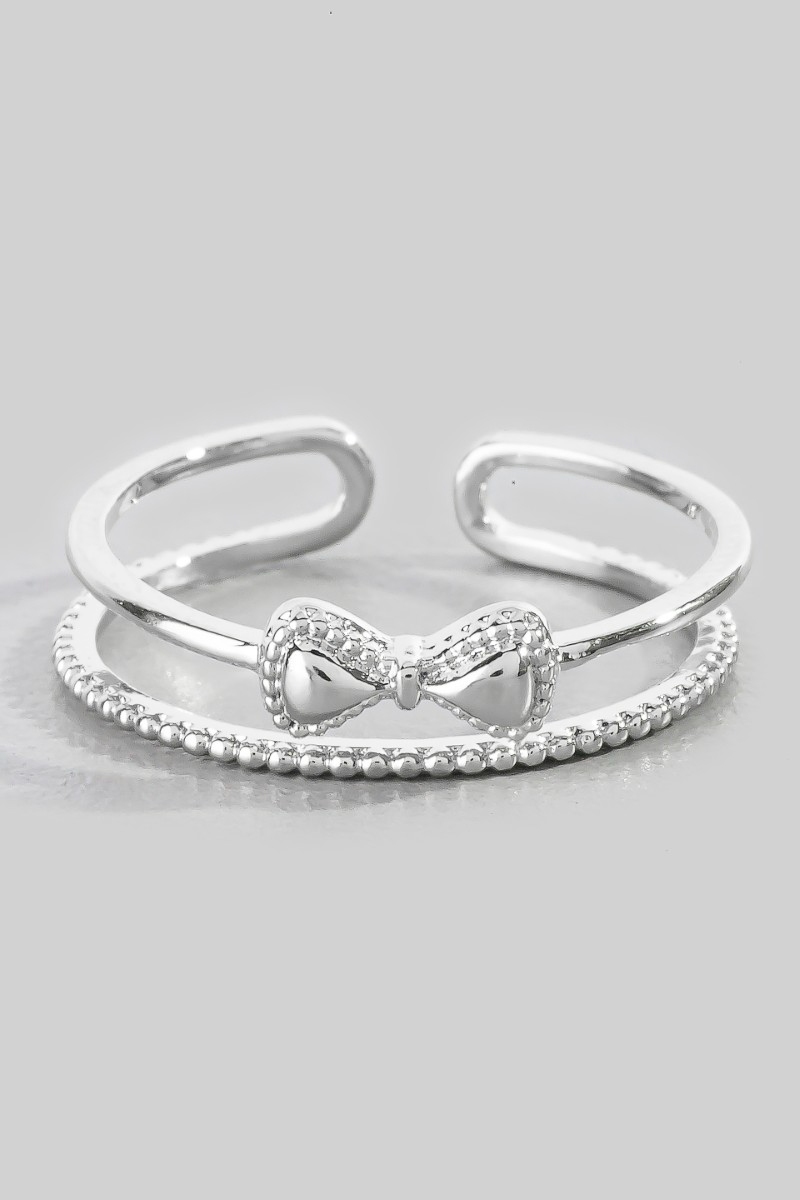 - This ring displays a fashionable two row bow décor style. Savor the craftsmanship that goes beyond the ordinary, as this ring effortlessly captivates attention.